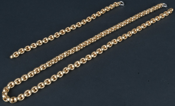 - Katalog-Nr: 1935Gliederhalskette und Armband. 18 kt Gold, ca. 128,40 g, L=20 bis 60 cm.o.L.