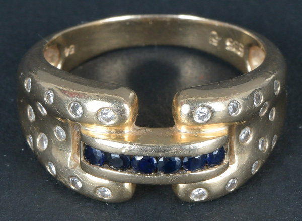 - Katalog-Nr: 1968Damenring. 14 kt Gold, besetzt mit Brillanten, ca. 0,25 ct, und Saphiren, Gesamtgewicht ca. 6,66 g, Ringgröße 57.o.L.