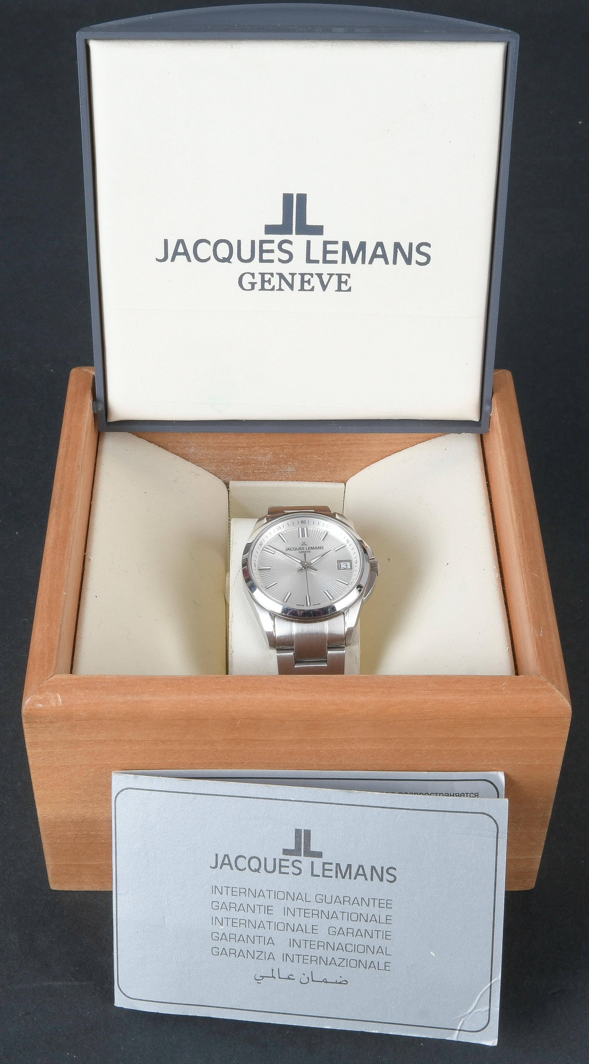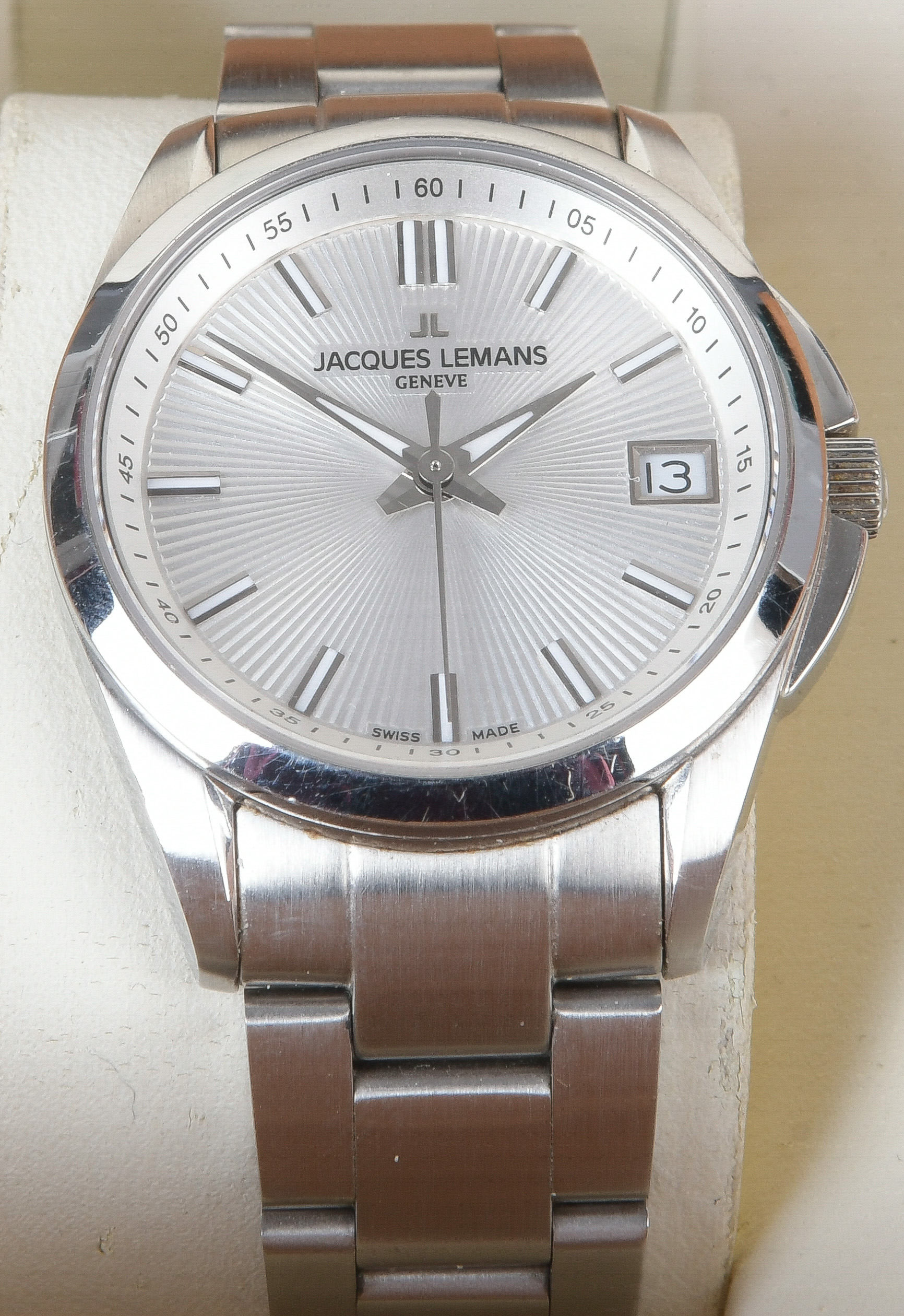 - Katalog-Nr: 2128Herrenarmbanduhr „Jacques Lemans“, mit Garantiekarte in Original-Schachtel. (Funktion ungeprüft)o.L.