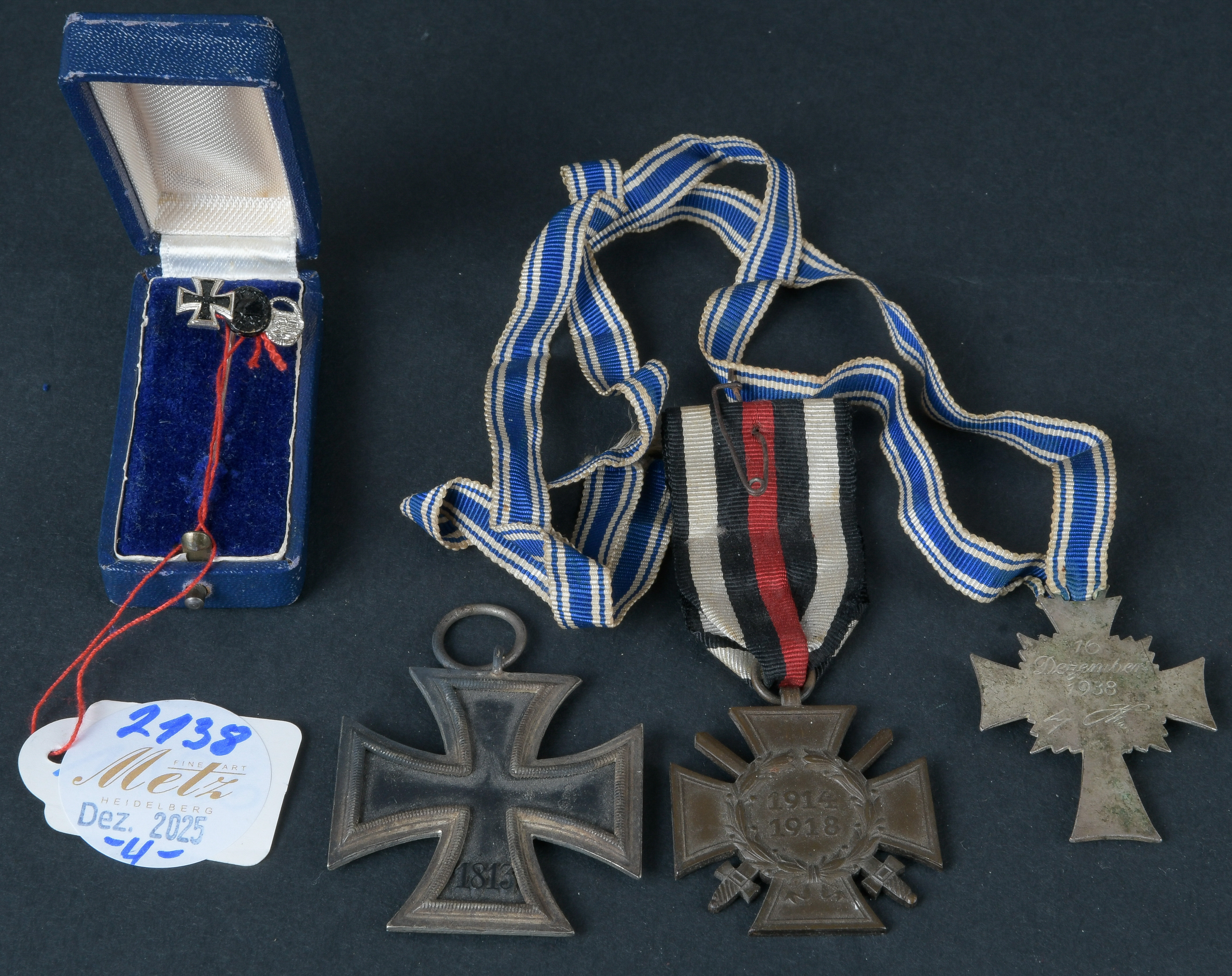 - Katalog-Nr: 2138Konvolut Orden, u.a. EK II. WK, Mutterkreuz II. Klasse, KVK II. Klasse mit Schwertern, Ausgehanstecknadel 1930er/40er Jahre.o.L.