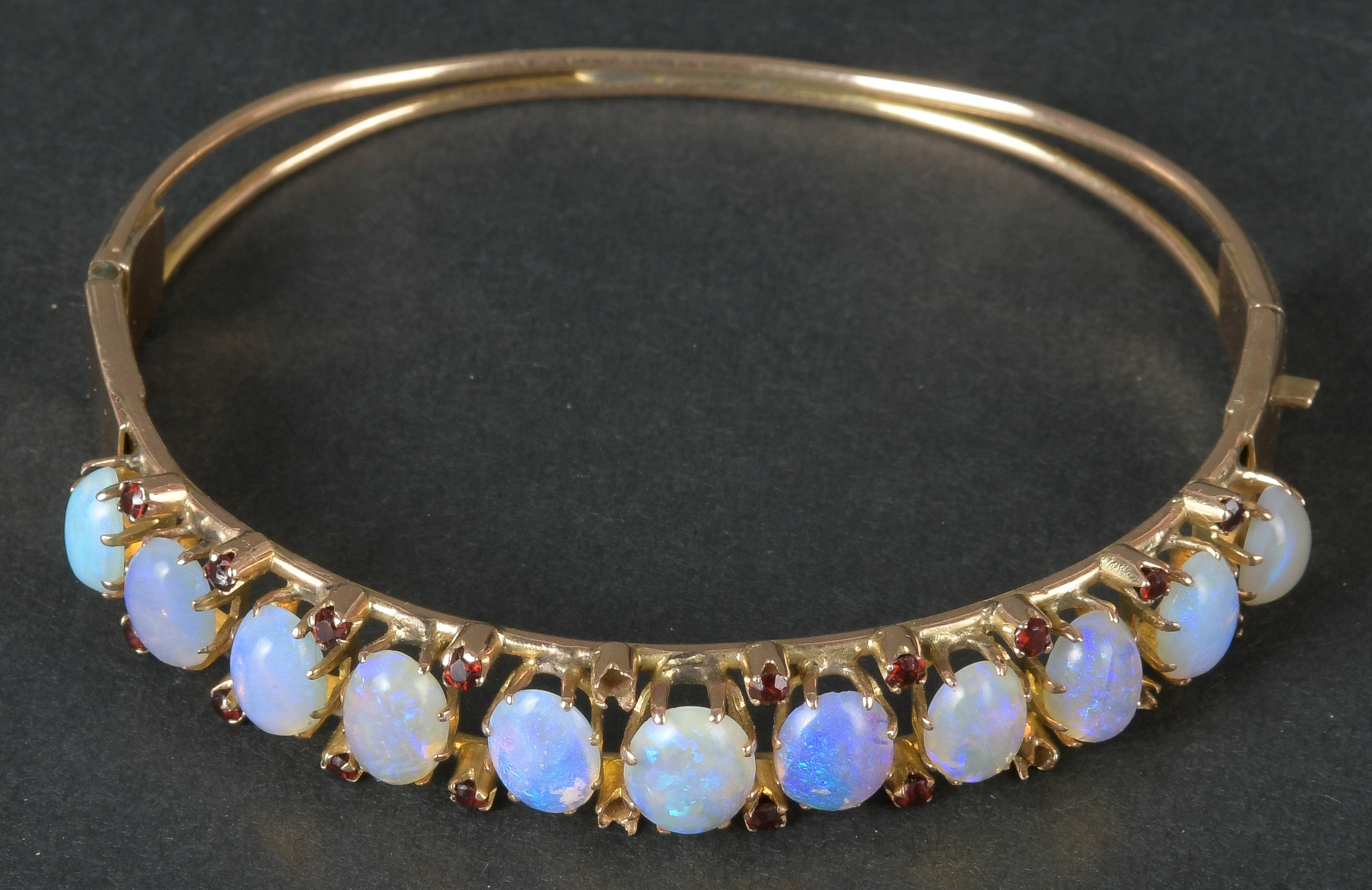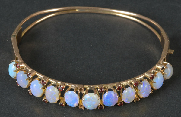 - Katalog-Nr: 2148Armreif. 14 kt Gold, besetzt mit elf Mondsteinen, Gesamtgewicht ca. 16,43 g.o.L.