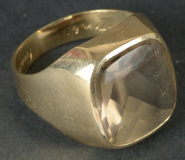 - Katalog-Nr: 2144Herrenring. 14 kt Gold, besetzt mit Rauchquarz, Gesamtgewicht ca. 7,74 g, Ringgröße 63.o.L.