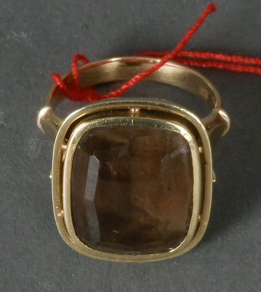 - Katalog-Nr: 2145Damenring. 14 kt Gold, besetzt mit Rauchtopas, Gesamtgewicht ca. 6,78 g, Ringgröße 54.o.L.