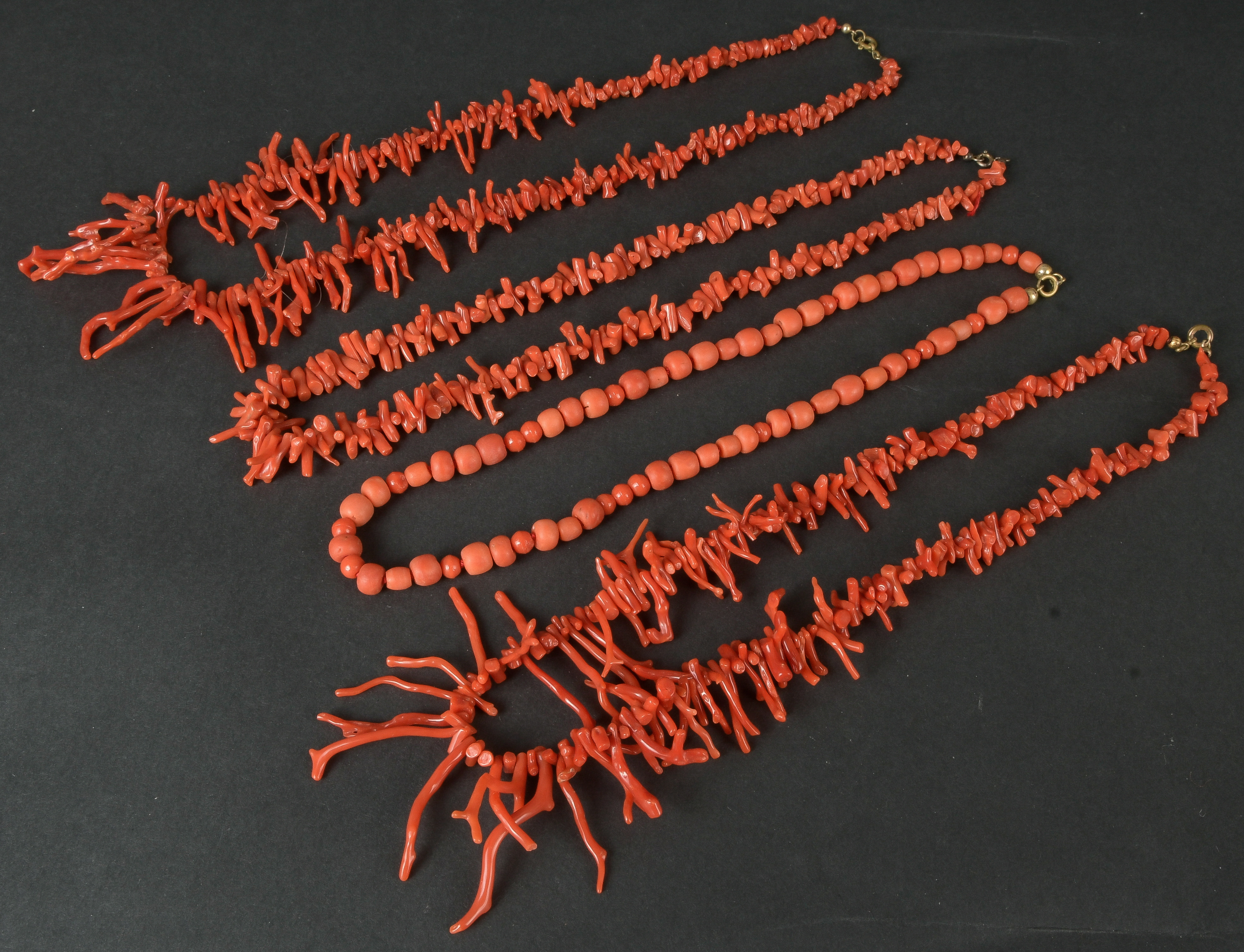 - Katalog-Nr: 2153Vier Korallenketten, L=44 bis 52 cm.o.L.