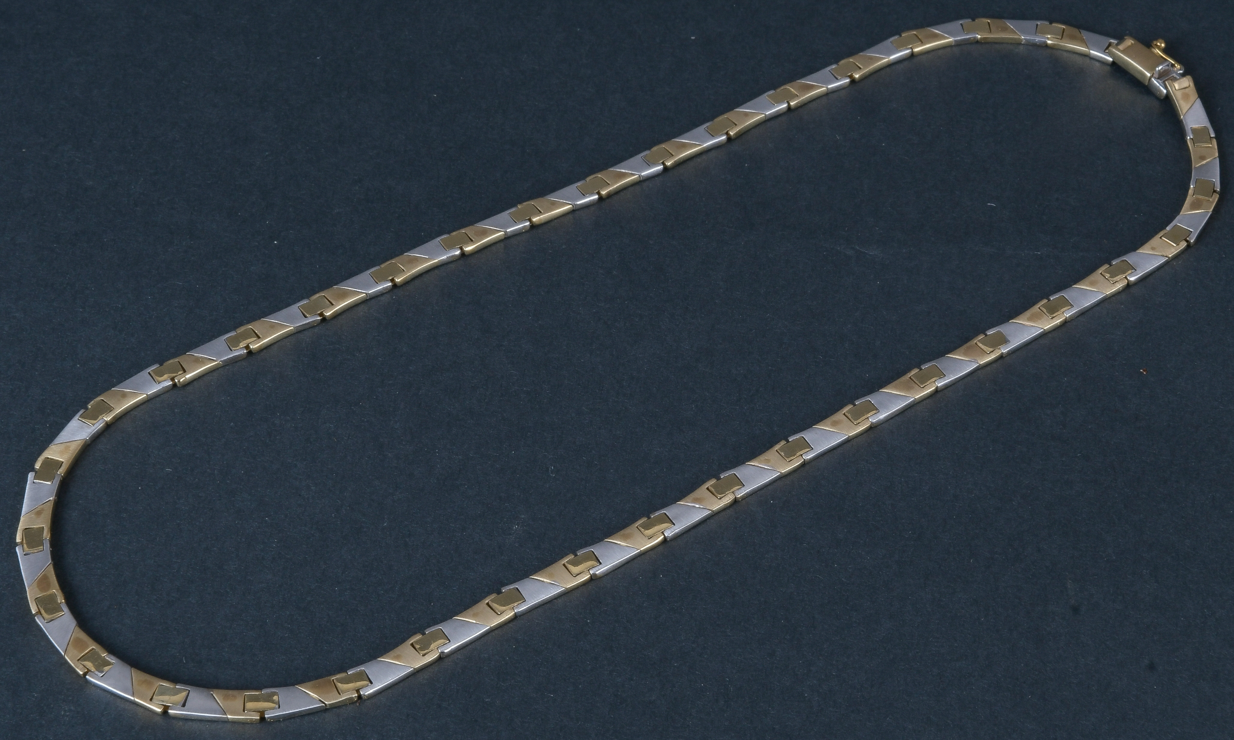 - Katalog-Nr: 2162Bicolor-Gliederhalskette. 14 ct Gold, ca. 27,83 g, L=42 cm.o.L.