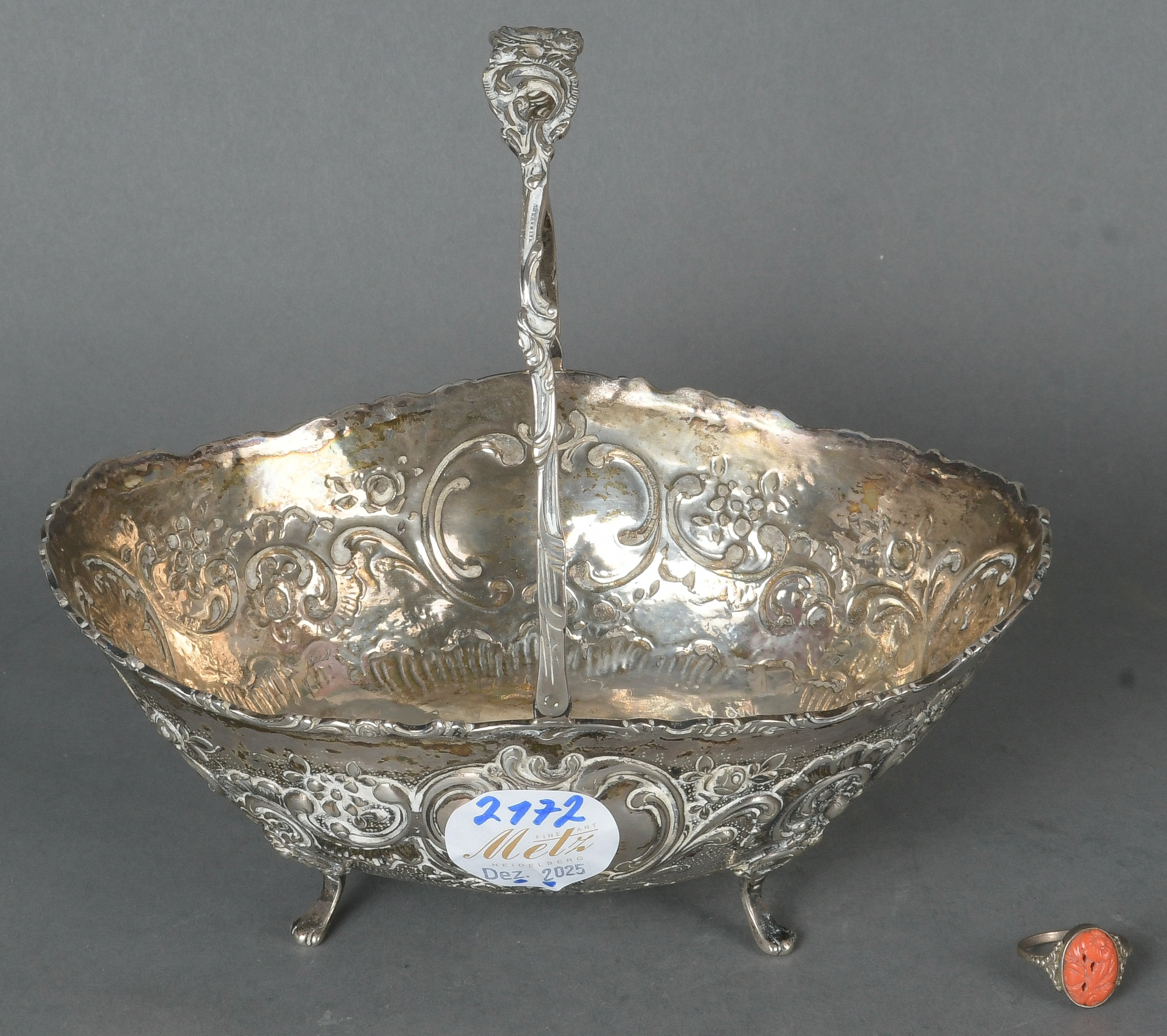 - Katalog-Nr: 2172Henkelschale und Korallenring. Silber, ca. 366 g, Ringgröße 55.o.L.
