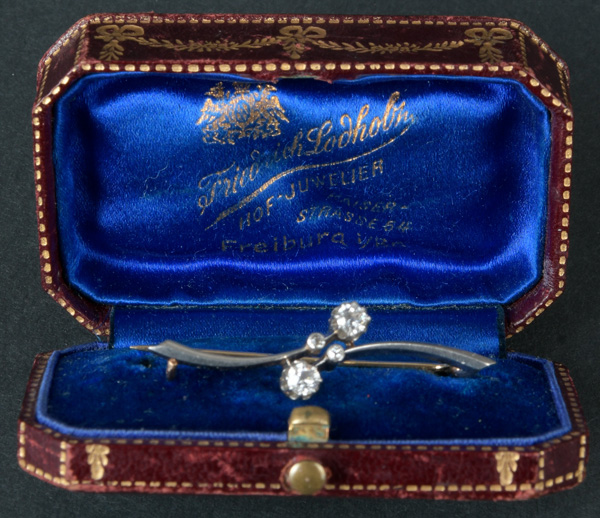 - Katalog-Nr: 2163Stabbrosche. 14 kt Gold, besetzt mit Brillanten, ca. 0,30 ct, Gesamtgewicht ca. 4,27 g.o.L.