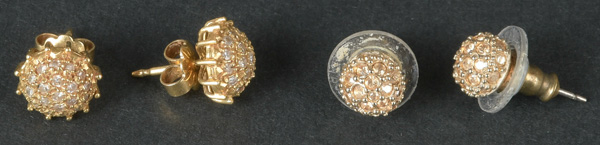 - Katalog-Nr: 2166Zwei Paar Ohrstecker: 14 kt Gold, besetzt mit Diamanten, ca. 0,15 ct, Gesamtgewicht ca. 2,83 g / das andere Paar vergoldet.o.L.