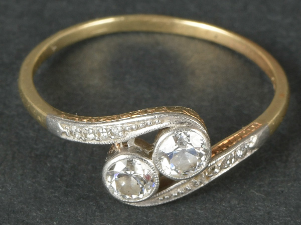 - Katalog-Nr: 2159Damenring. 18 kt Gold, besetzt mit Brillanten, ca. 0,20 ct, Gesamtgewicht ca. 5,84 g, Ringgröße 56.o.L.