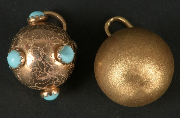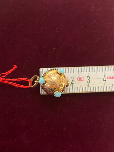 - Katalog-Nr: 2247Zwei Anhänger. 18 kt Gold, besetzt mit Türkis, Gesamtgewicht ca. 8,55 g.o.L.