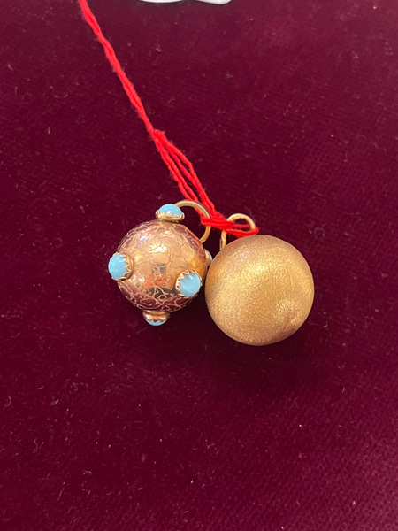 - Katalog-Nr: 2225Anstecknadel und zwei Anhänger. 14 kt Gold, besetzt mit Grandeln, Gesamtgewicht ca. 17,72 g.o.L.