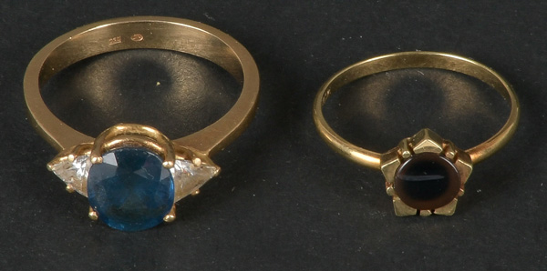 - Katalog-Nr: 2249Zwei Damenringe. 18 kt Gold, u.a. besetzt mit Saphir und Diamanten, ca. 0,20 ct, Gesamtgewicht ca. 4,90 g, Ringgröße 48 / 52.o.L.