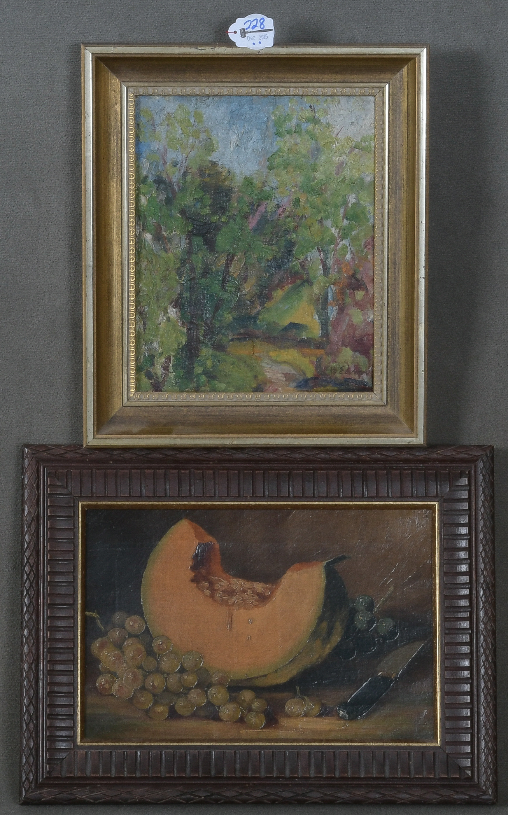 - Katalog-Nr: 228F.H. Edward (Maler des 20. Jhs.). Weg mit Bäumen. Öl/Lw., re./u./sign., gerahmt (27 x 22 cm); dazu Maler des 19. Jhs. Obststillleben. Öl/Lw., gerahmt, 22,5 x 32,5 cm.o.L.