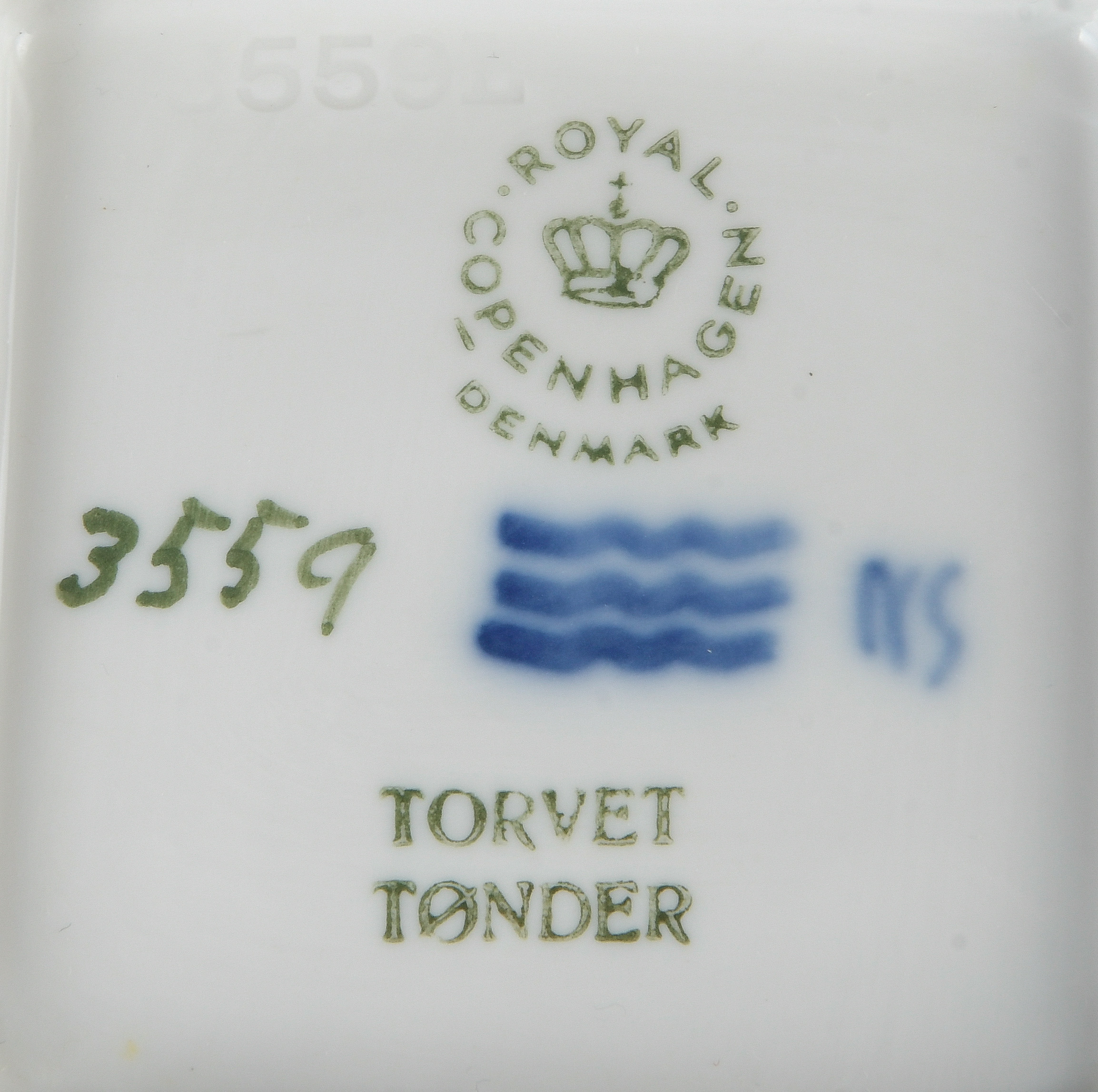 - Katalog-Nr: 2437Achttlgs. Konvolut. Royal Copenhagen 20. Jh. Porzellan, bunt bemalt; am Boden gemarkt. Bestehend aus: Eine Vogelschale (H=3 cm, B=17 cm, T=15,5 cm), eine quadratische Schale (H=2 cm, B=10,5 cm), fünf Weihnachtsteller 1970-1974 (D=je 18,5 cm) und eine Vase „Tenera Serie“, Entwurf von Marianne Johanson.o.L.