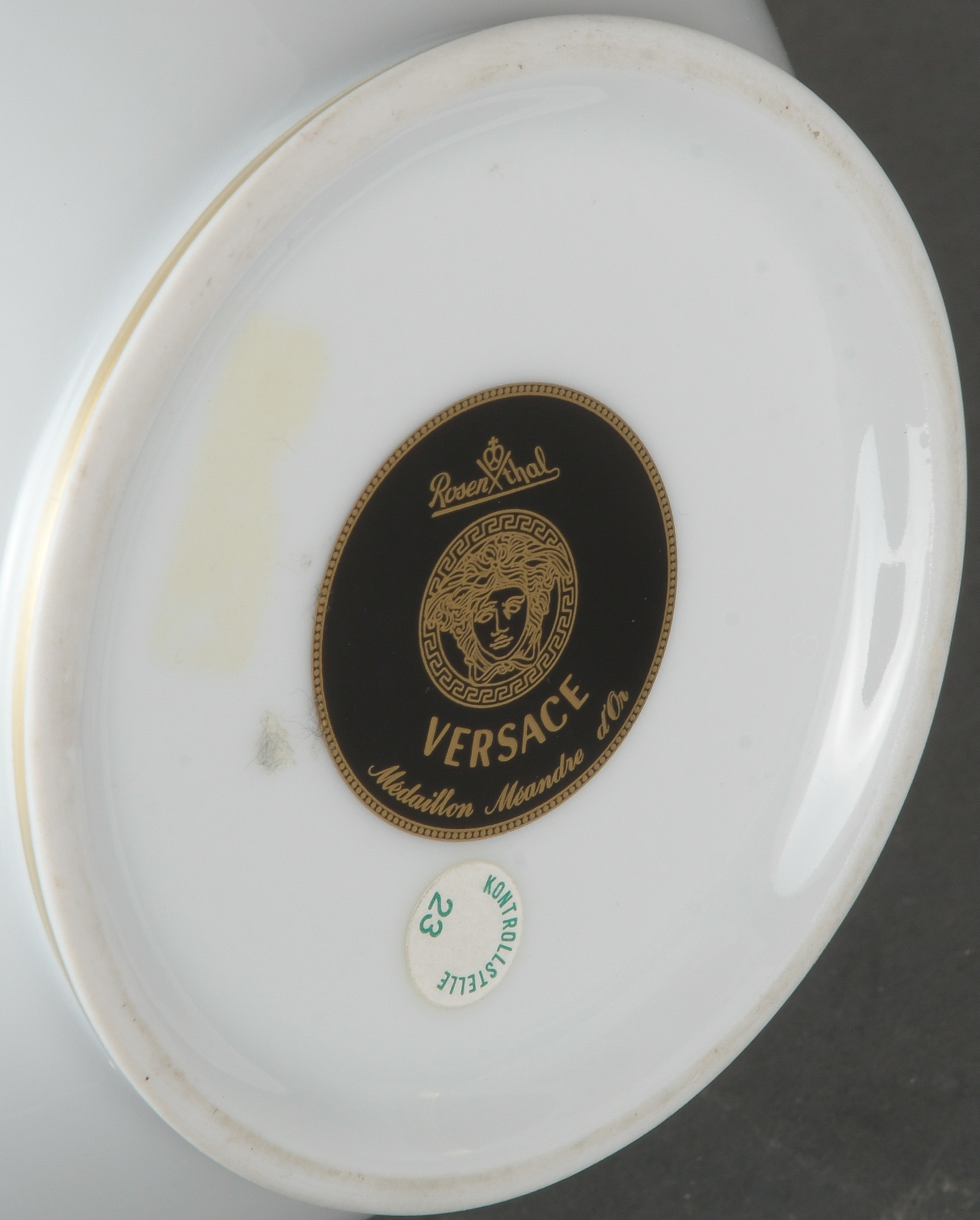 - Katalog-Nr: 2445Fünf unterschiedliche Formteile. Rosenthal 20. Jh. Porzellan, am Boden gemarkt; Entwurf von Gianni Versace, meist in Original-Karton. Bestehend aus: Eine Glocke, eine Lavabo-Garnitur, eine Tischuhr und eine Weihnachtskugel, H=10,5 bis 27 cm, D=6,5 bis 35 cm.o.L.