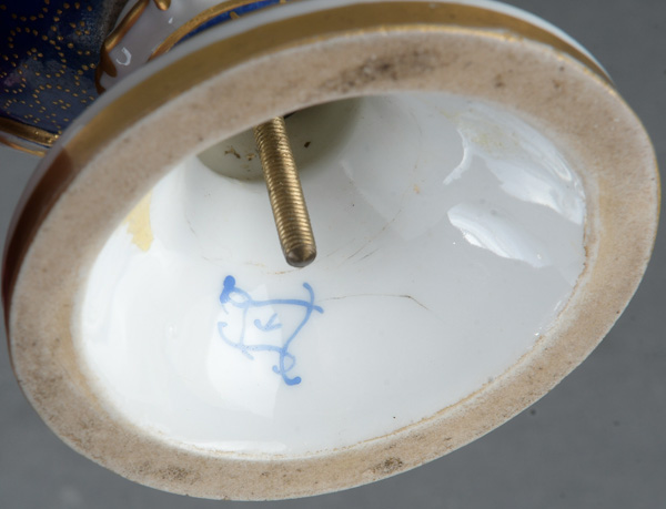 - Katalog-Nr: 2441Neuntlgs. Konvolut, u.a. Böhmen / Dresden 20. Jh. Porzellan, bunt bemalt; am Boden gemarkt. Bestehend aus: Zwei Deckeldosen, eine Figur, eine Fußschale, eine Tasse, eine Unterschale, eine Tabatière, ein Tafelaufsatz und eine Vase, H=3,5 bis 28,5 cm, D=4,5 bis 19 cm.o.L.
