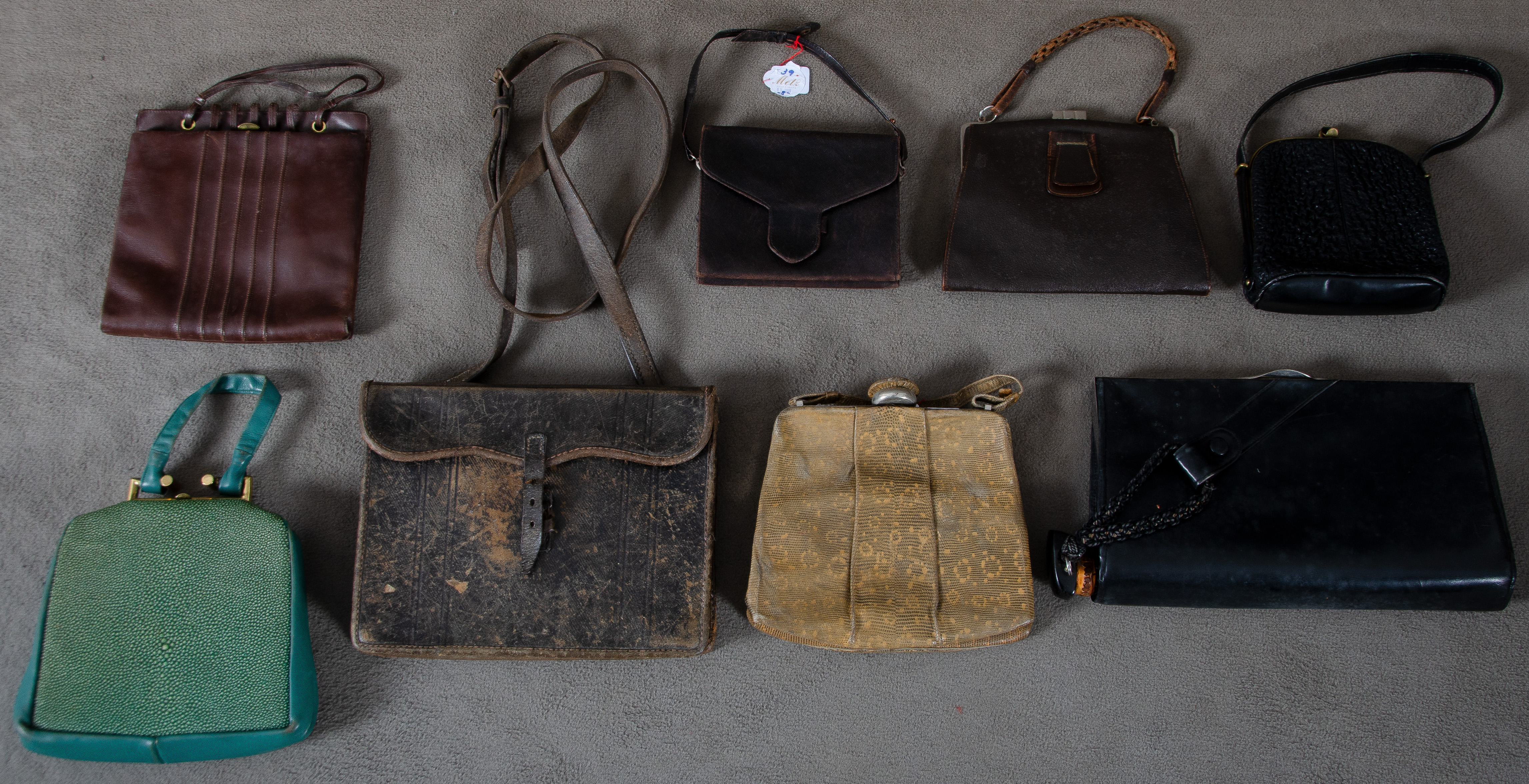 - Katalog-Nr: 39Acht Handtaschen. Deutsch 20. Jh. Meist Leder, H=12 bis 21 cm.o.L.