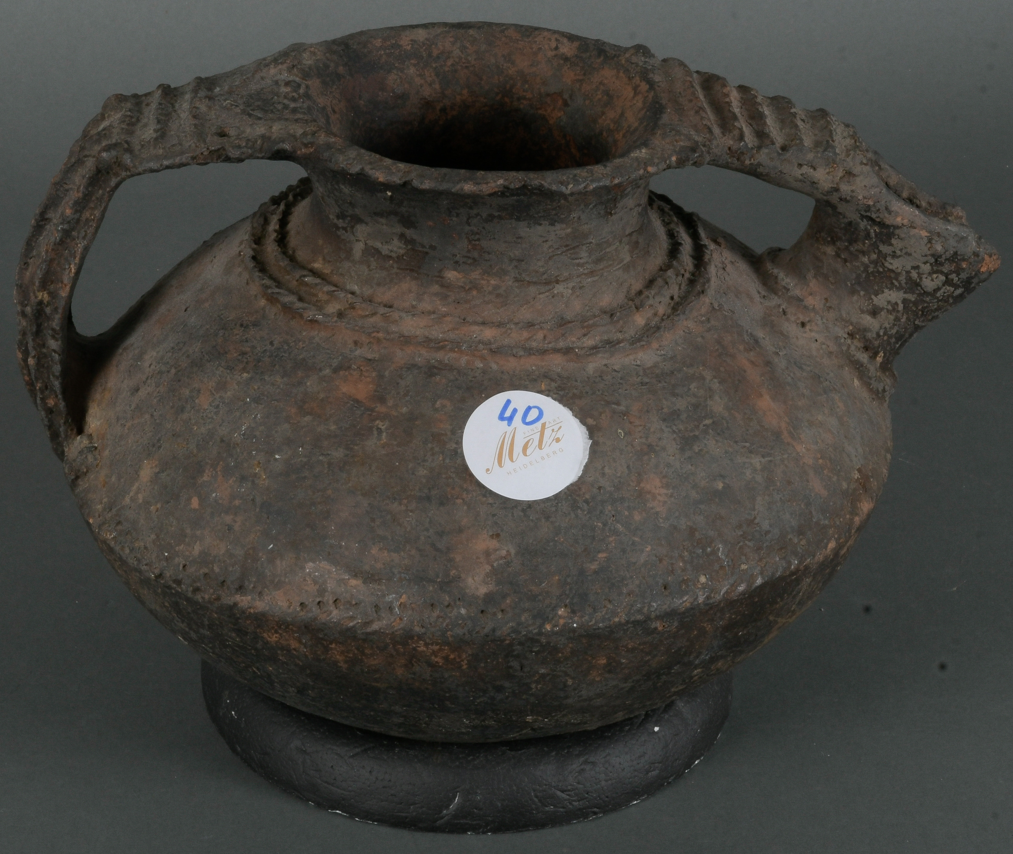 - Katalog-Nr: 38Schenkkrug. Wohl Afghanistan späte Bronzezeit. Ton, gebrannt, mit Eiseneinschlüssen, H=19 cm.o.L.