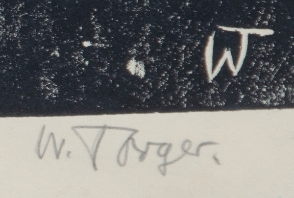 - Katalog-Nr: 366Will Torger (1910-1984). Beweinung Christi. Holzschnitt, re./u./sign., li./u./bez. „Handabzug 3/8“ (60 x 42 cm); dazu Maler des 20. Jhs. Kreuz. Mischtechnik, collagiert, mittig/u./monogr. „LK“ (37 x 30 cm). Je hi./Gl. gerahmt. (ein Glas besch.)o.L.