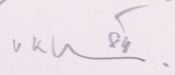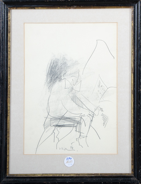 - Katalog-Nr: 370Vladislav Kavan (1924-2003). Klavierspieler. Bleistiftzeichnung, mittig/u./monogr./dat. (19)84, mit Passepartout hi./Gl. gerahmt, 39 x 28 cm.o.L.