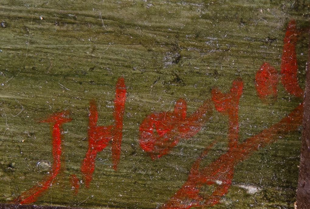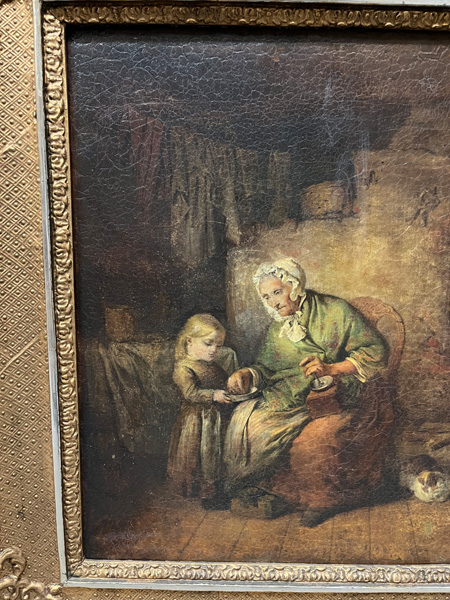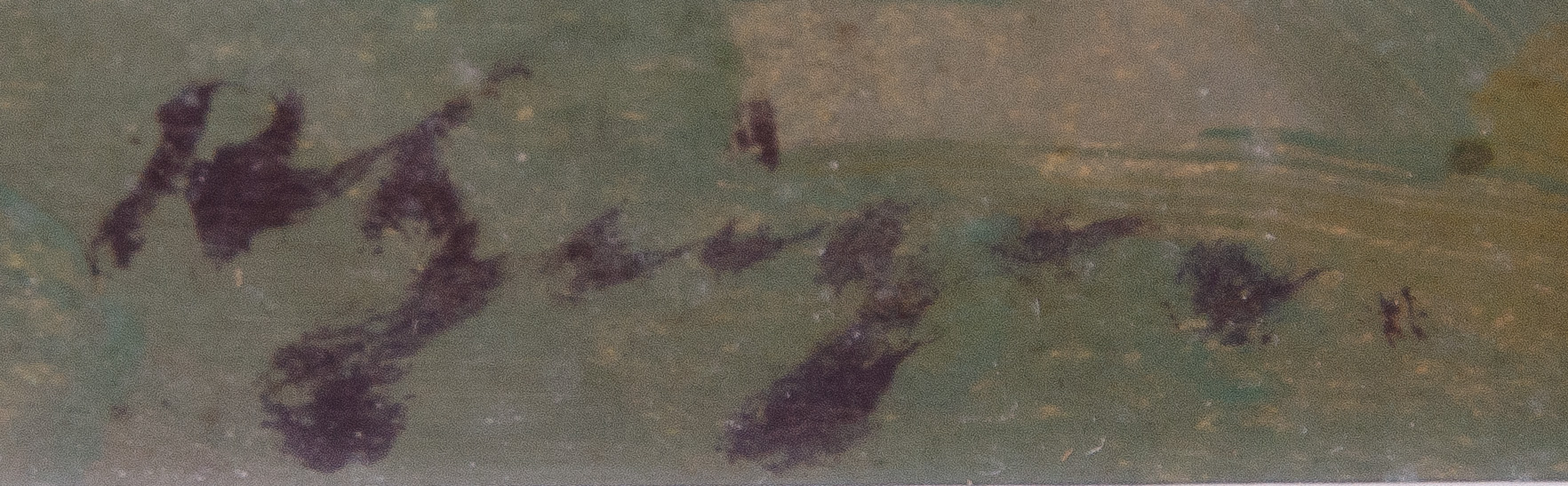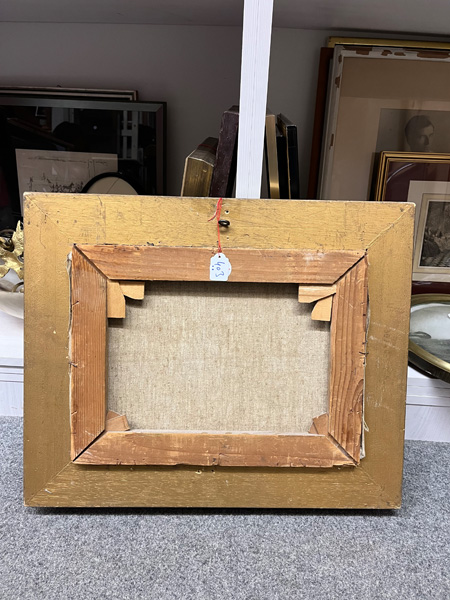 - Katalog-Nr: 403Maler des 20. Jhs. Kühe auf der Weide. Öl/Lw., re./u. unleserlich sign., gerahmt (30,5 x 41 cm); dazu Rahmen mit Öldruck, 37 x 44,5 / 51 x 57 cm.o.L.