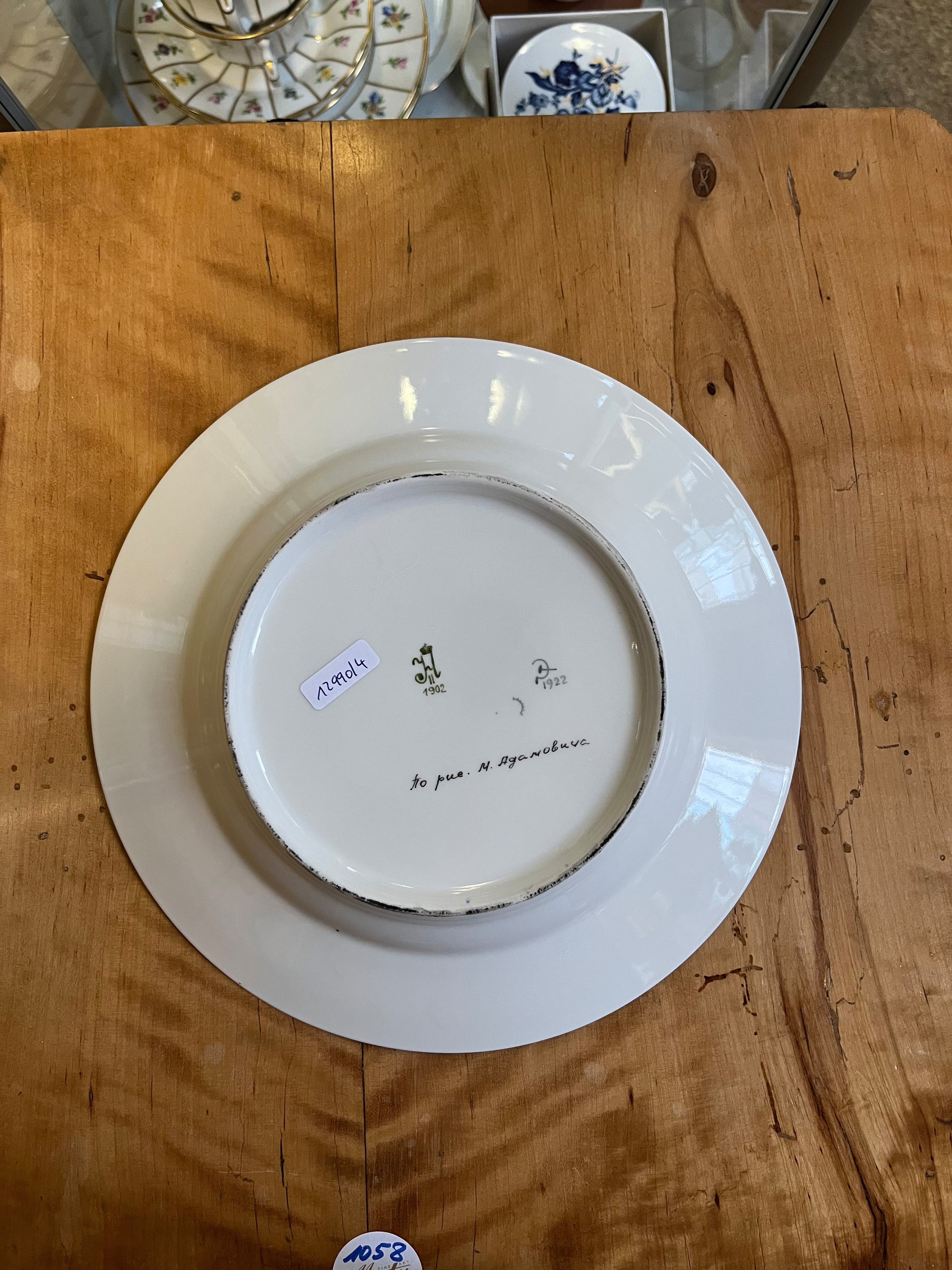 - Katalog-Nr: 419Revolutionsteller. Russland. Porzellan, bunt bemalt, verso beschriftet „1902“ und „1922“, D=24,2 cm.o.L.