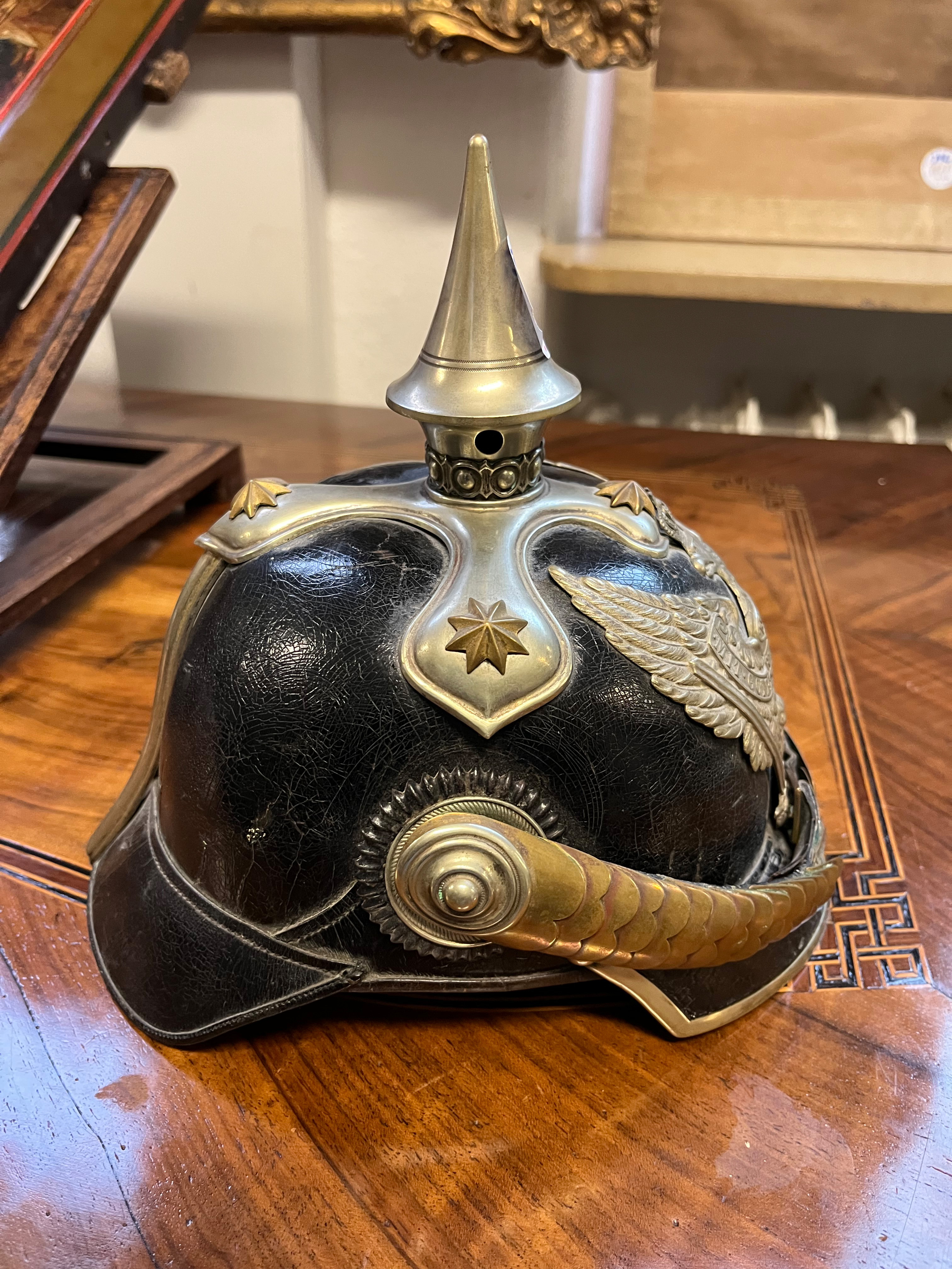- Katalog-Nr: 533Preußische Pickelhaube eines Dragoner-Offiziers, „M/1871“.o.L.