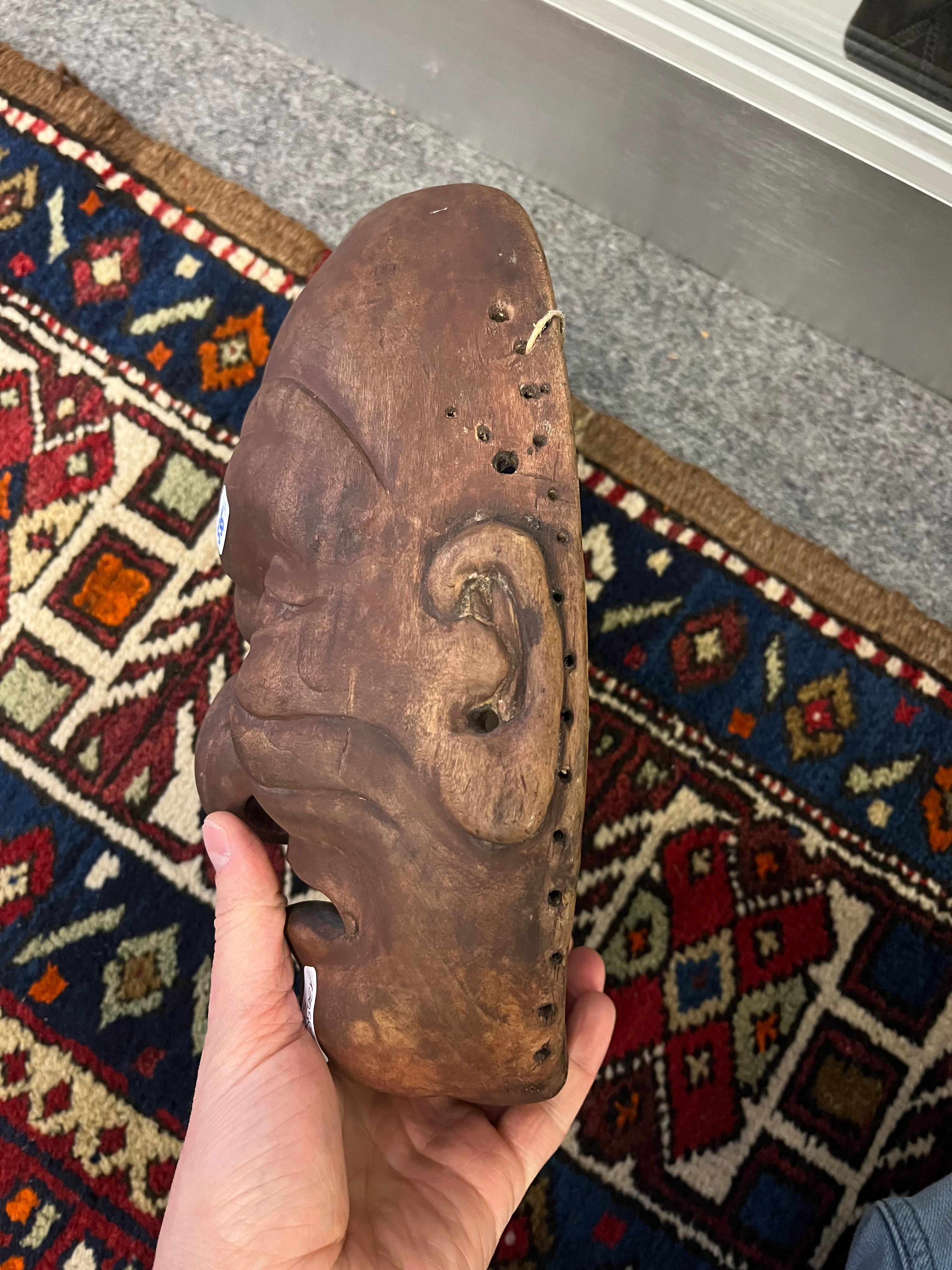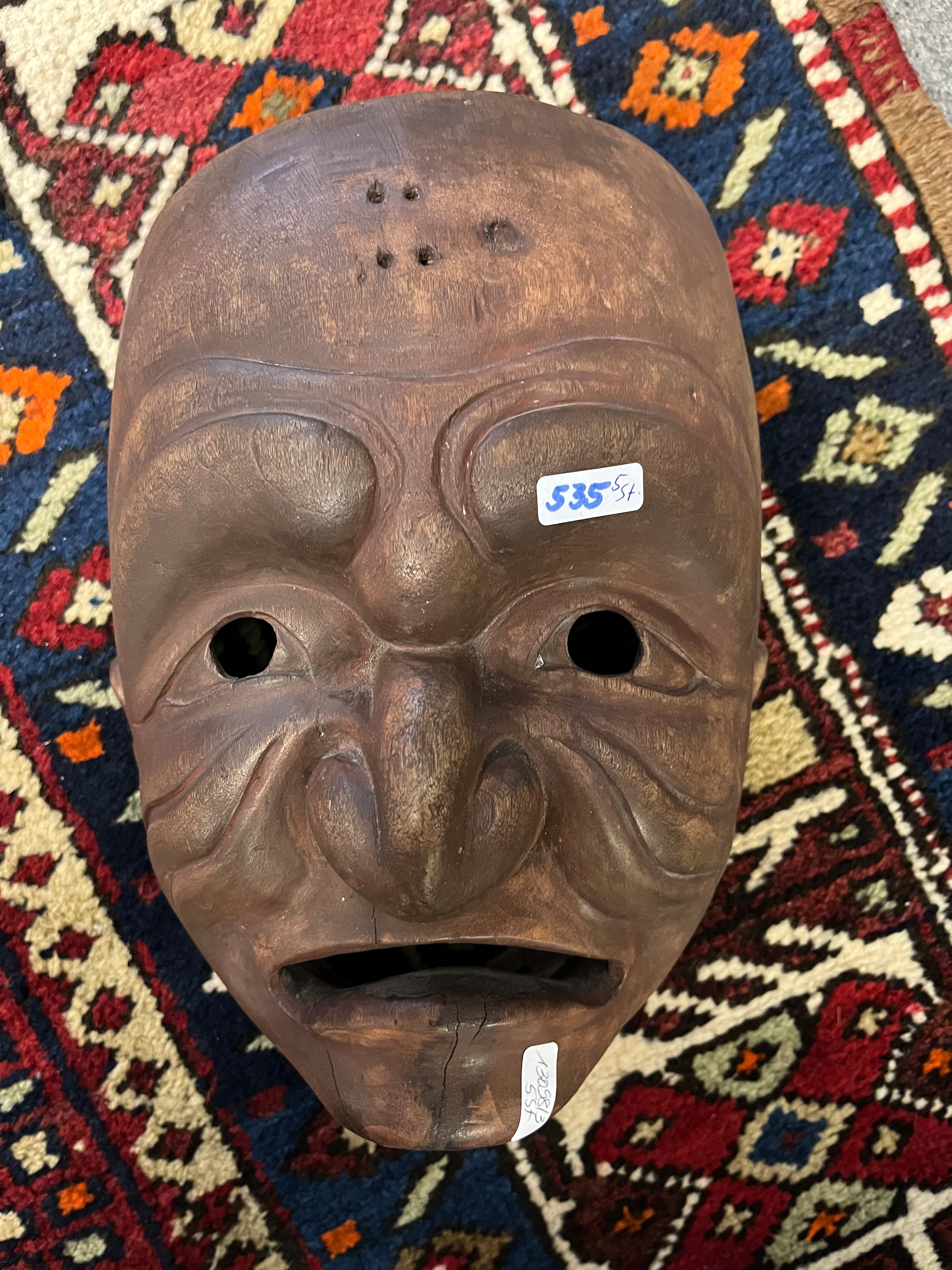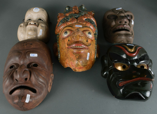 - Katalog-Nr: 535Fünf Gesichtsmasken. Asien. Massivholz, geschnitzt, teilw. farbig gefasst, 20,5 x 13,5 bis 36 x 20 cm.o.L.