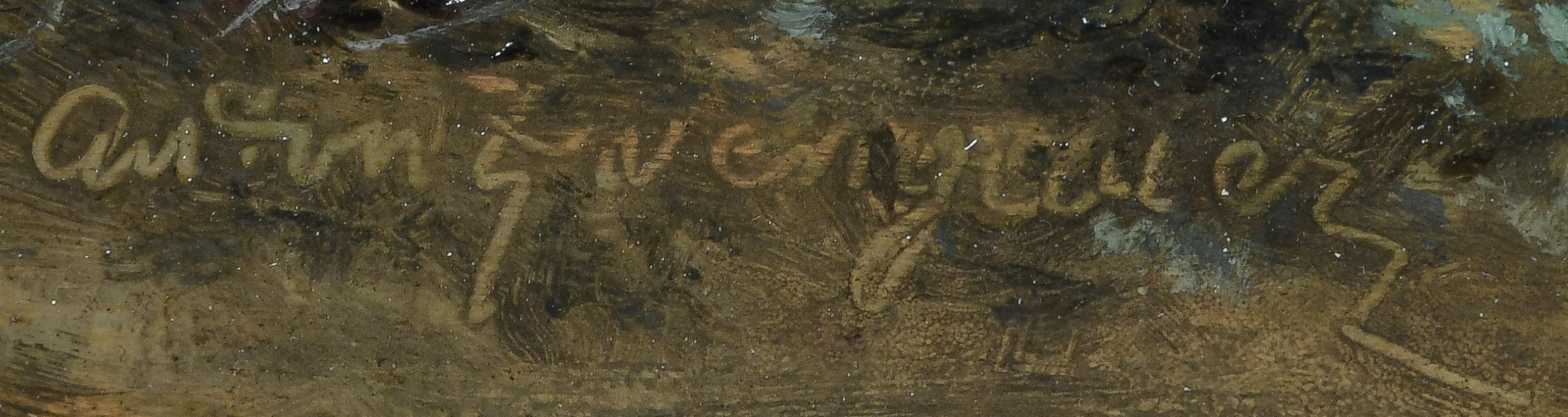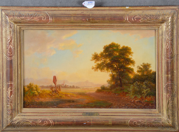 - Katalog-Nr: 527Wilhelm Boshart (1815-1878) attrib. Panoramalandschaft. Öl/Lw., gerahmt, 26,5 x 43,5 cm.o.L.