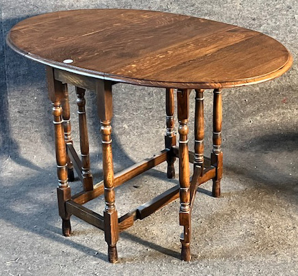 - Katalog-Nr: 687Gateleg-Table. England 20. Jh. Massiv Eiche, gedrechseltes Gestell mit seitlich abklappbarer Platte, H=73 cm, B=37 / 115 cm, T=76 cm. >>> Diese Los Nr. kann am Fr., den 10.04.26 (10.00 h bis 12.00 h) in unserem Depot in Mannheim abgeholt werden.o.L.