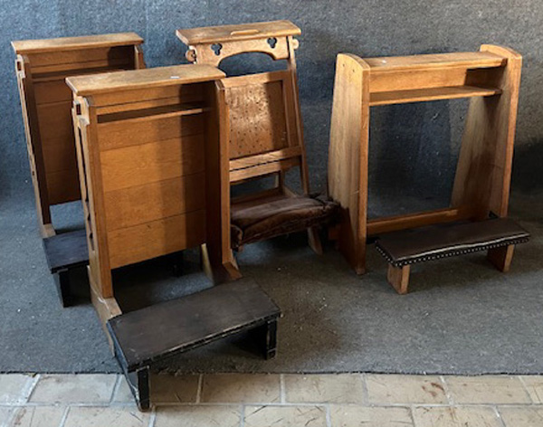 - Katalog-Nr: 694Drei Gebetsbänke und ein Gebetsstuhl. Deutsch 20. Jh. Massiv Eiche, H=85 bis 91 cm. b >>> Diese Los Nr. kann am Fr., den 10.04.26 (10.00 h bis 12.00 h) in unserem Depot in Mannheim abgeholt werden.o.L.
