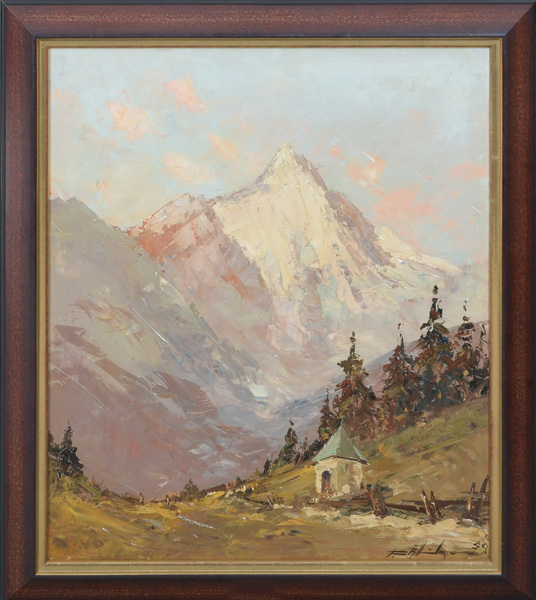 - Katalog-Nr: 757Maler des 20. Jhs. Hochgebirgslandschaft. Öl/Holz, re./u. unleserlich sign./dat. 1959, gerahmt, 65,5 x 55,5 cm.o.L.