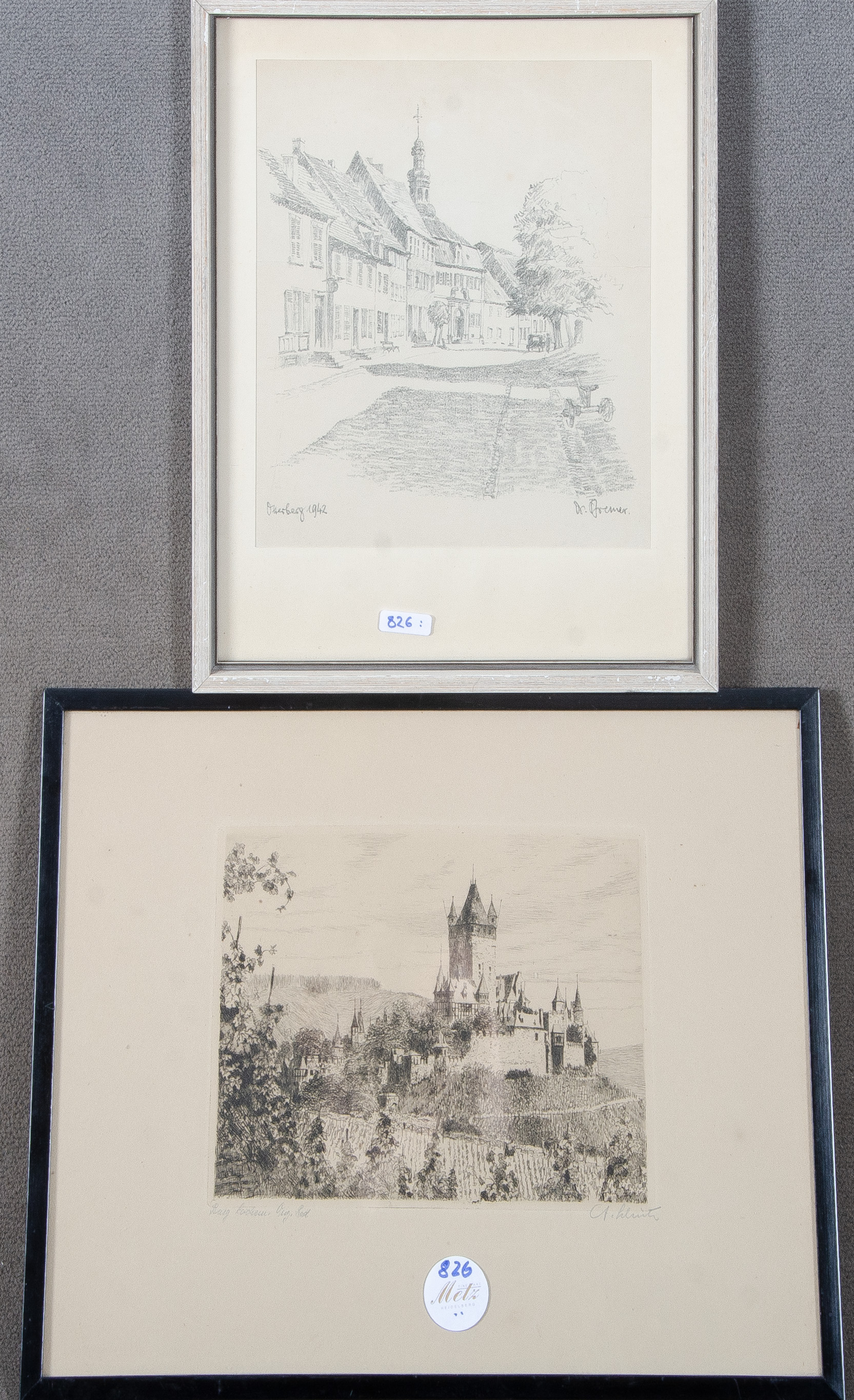 - Katalog-Nr: 826„Burg Cochem". Radierung, re./u. unleserlich sign., hi./Gl. gerahmt, dazu ein Rahmen, 15,5 x 21 cm.o.L.
