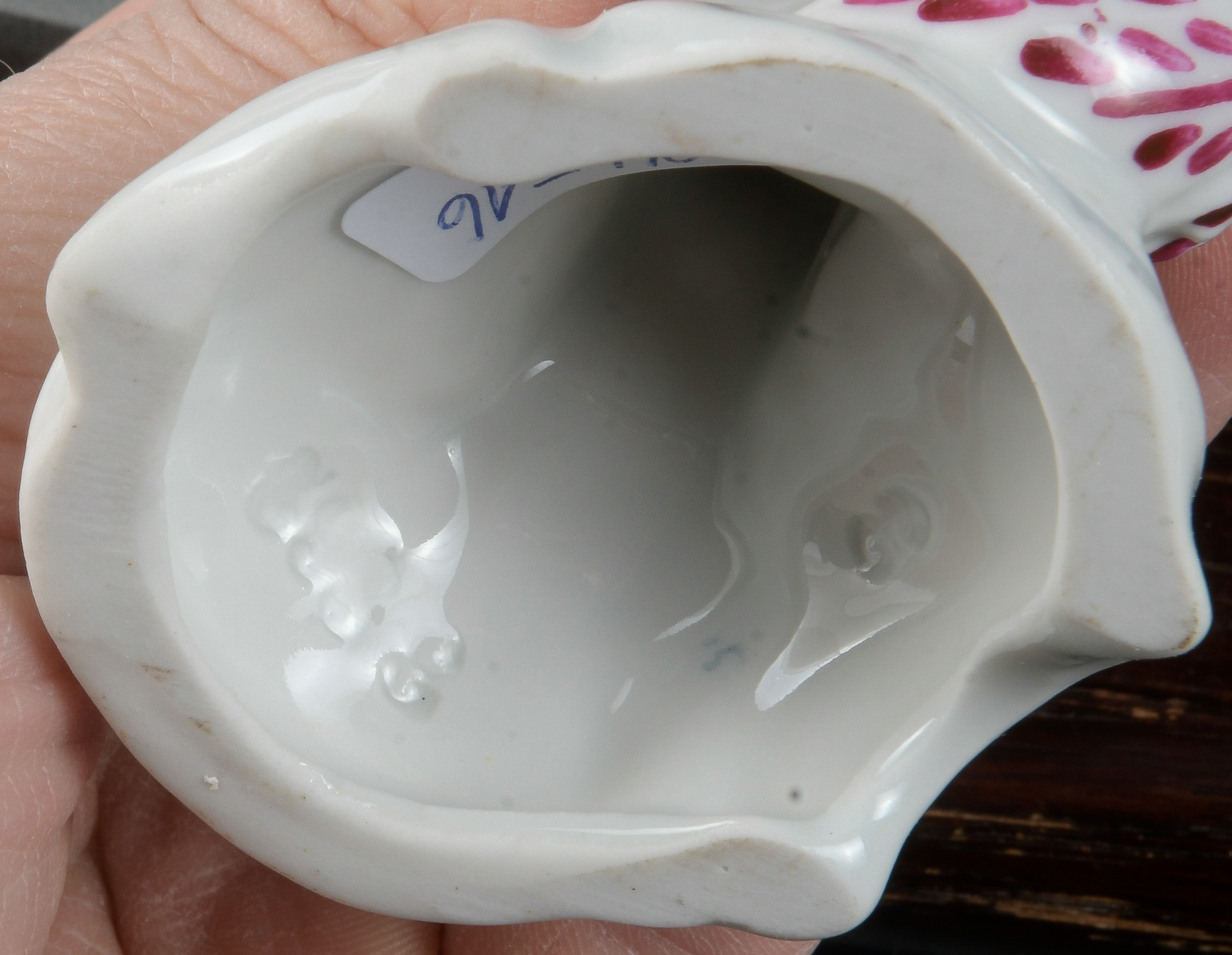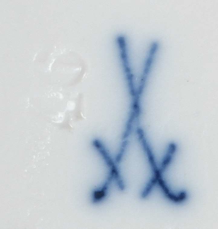 - Katalog-Nr: 848Gewürzschale. Meissen 19. Jh. Porzellan, bunt bemalt mit Streublumen; am Boden unterglasurblaue Schwertermarke. Modell nach Johann Joachim Kaendler, H=12,4 cm. (min. best.)o.L.