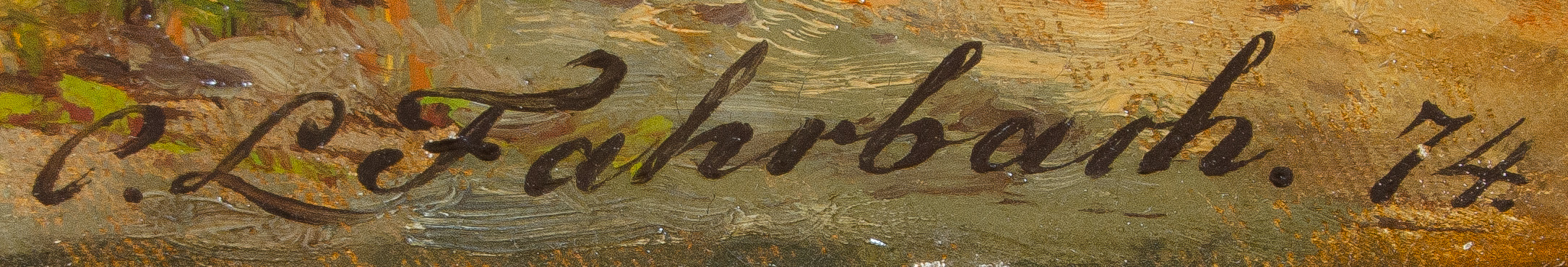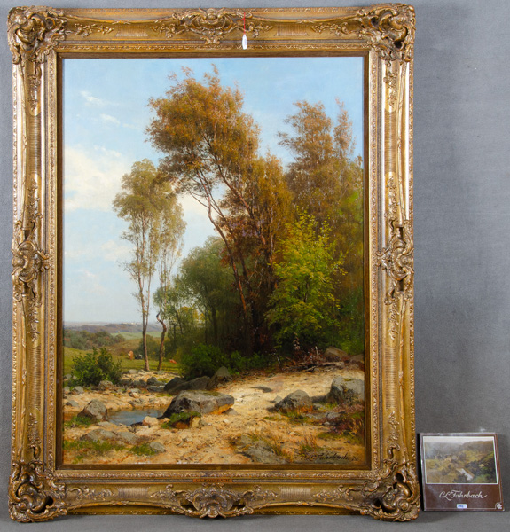 - Katalog-Nr: 888Carl Ludwig Fahrbach (1835-1902). „Spätsommer mit Weiden“. Öl/Lw., re./u./sign./dat. (18)74, gerahmt (114 x 83 cm). Provenienz: Galerie Paffrath, Düsseldorf; danach Privatbesitz. Vgl. als Beigabe Ausstellungskatalog „Carl Ludwig Fahrbach“, Städtische Galerie Villa Zanders, Bergisch Gladbach 1985, S. 78, Nr. 77.o.L.