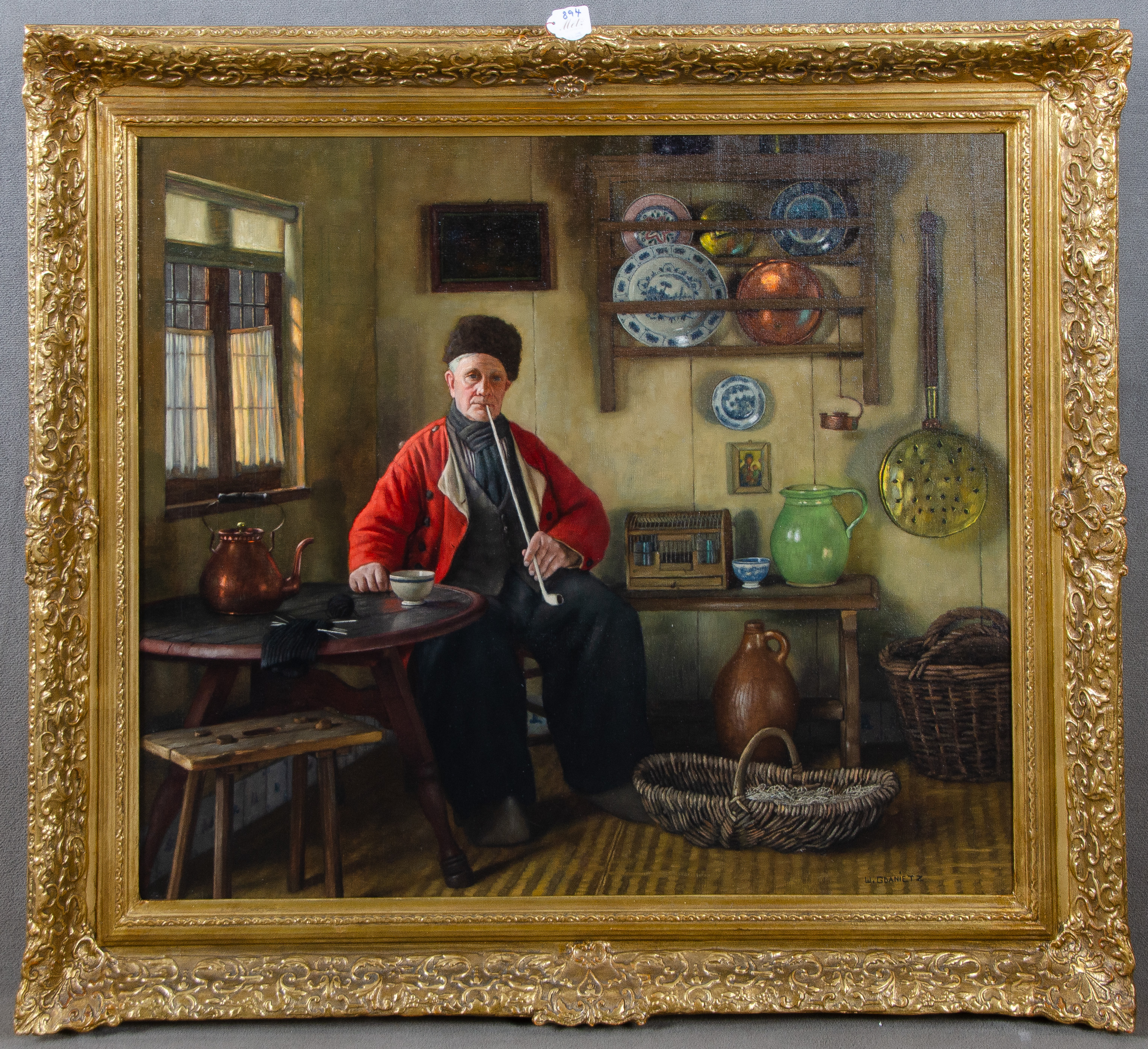 - Katalog-Nr: 894Wilhelm Gdanitz (1893-1969). Kücheninterieur mit pfeiferauchendem Holländer. Öl/Lw., re./u./sign., gerahmt, 72 x 80 cm.o.L.