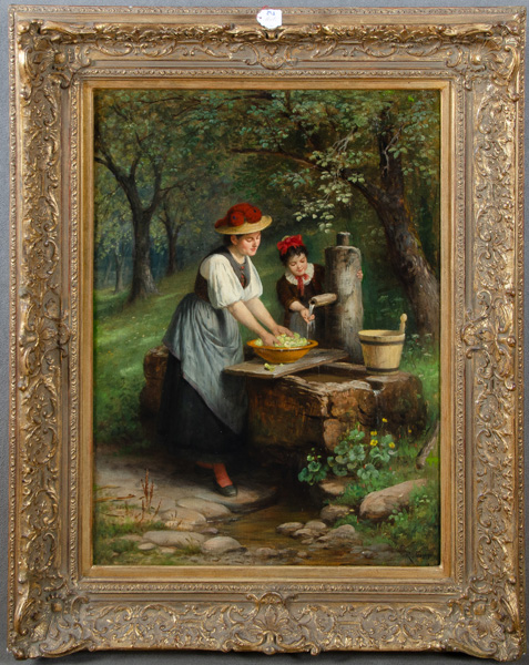 - Katalog-Nr: 893Rudolf Epp (1834-1910). Schwarzwälderinnen am Brunnen, Hopfen waschend. Öl/Lw., re./u./sign., gerahmt, 80 x 57,5 cm.o.L.
