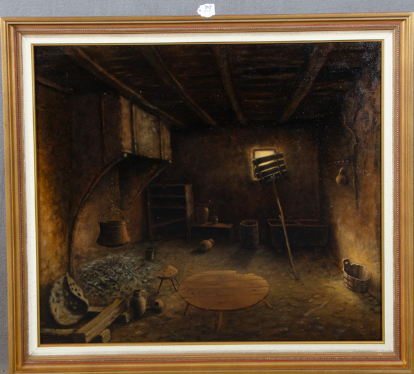 - Katalog-Nr: 895Tomislav Paunkovic (*1952). Interieur mit Feuerstelle. Öl/Lw., li./u./sign./dat. (19)91, gerahmt, 71,5 x 81 cm.o.L.