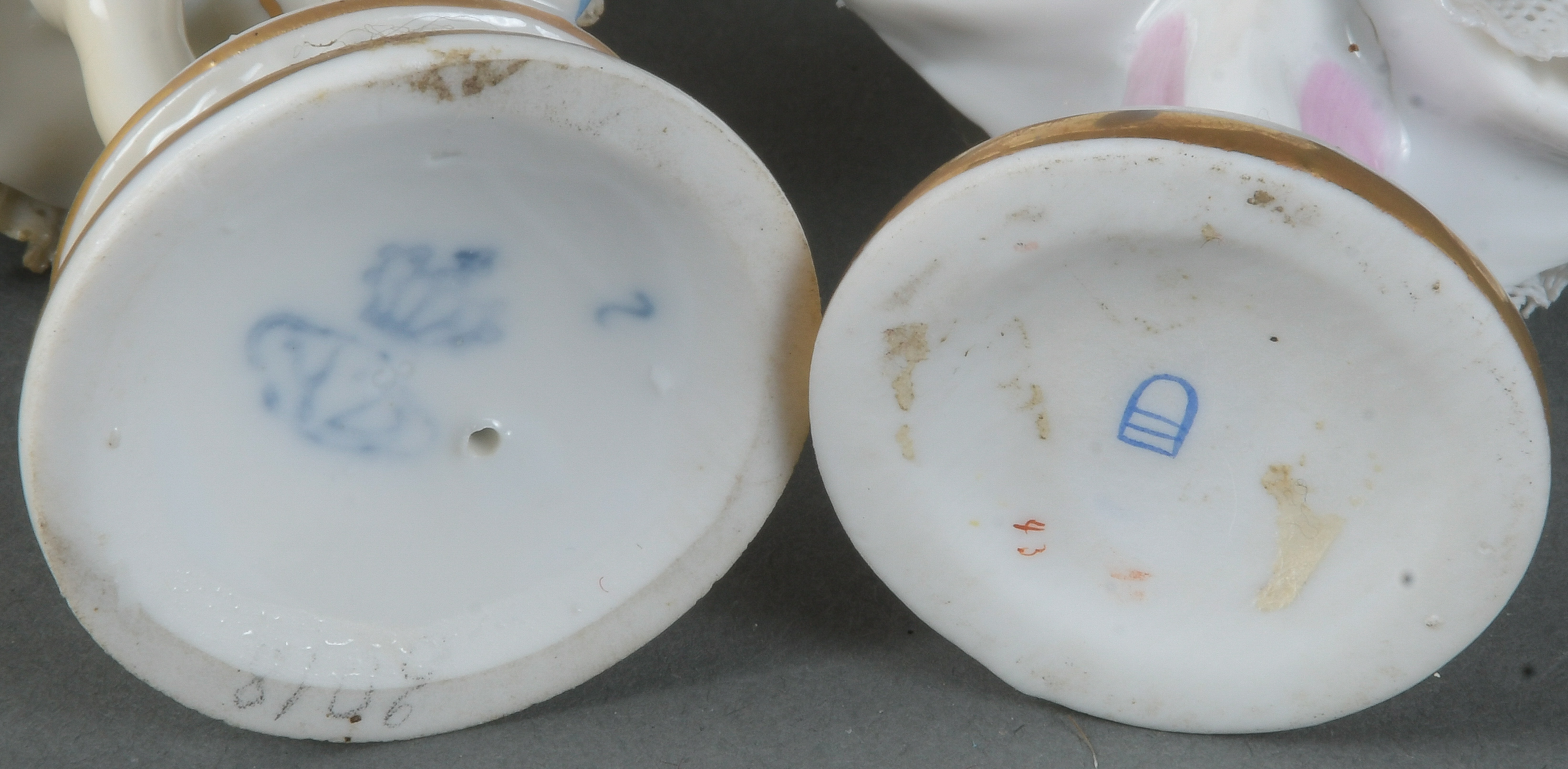 - Katalog-Nr: 1026Fünf Krinolinenfiguren, u.a. Dresden 20. Jh. Porzellan, bunt bemalt, H=10 bis 17 cm. (besch.)o.L.