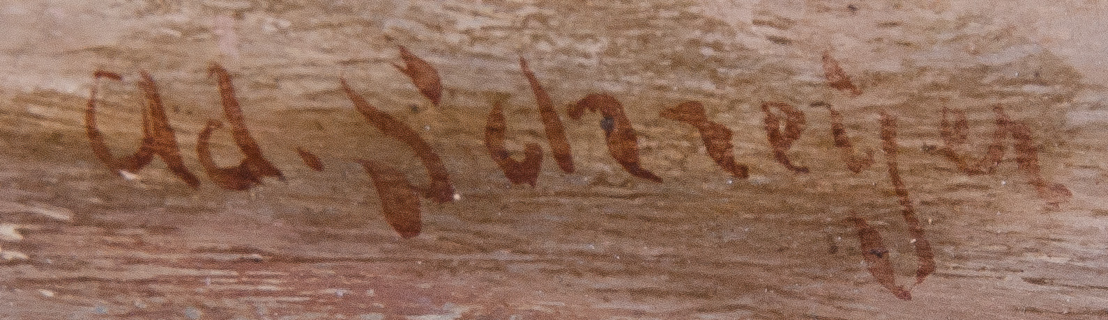 - Katalog-Nr: 1045Adolf Schreyer (1828-1899). Winterlandschaft mit Reitern. Öl/Holz, li./u./sign., gerahmt, 28,5 x 40 cm.o.L.