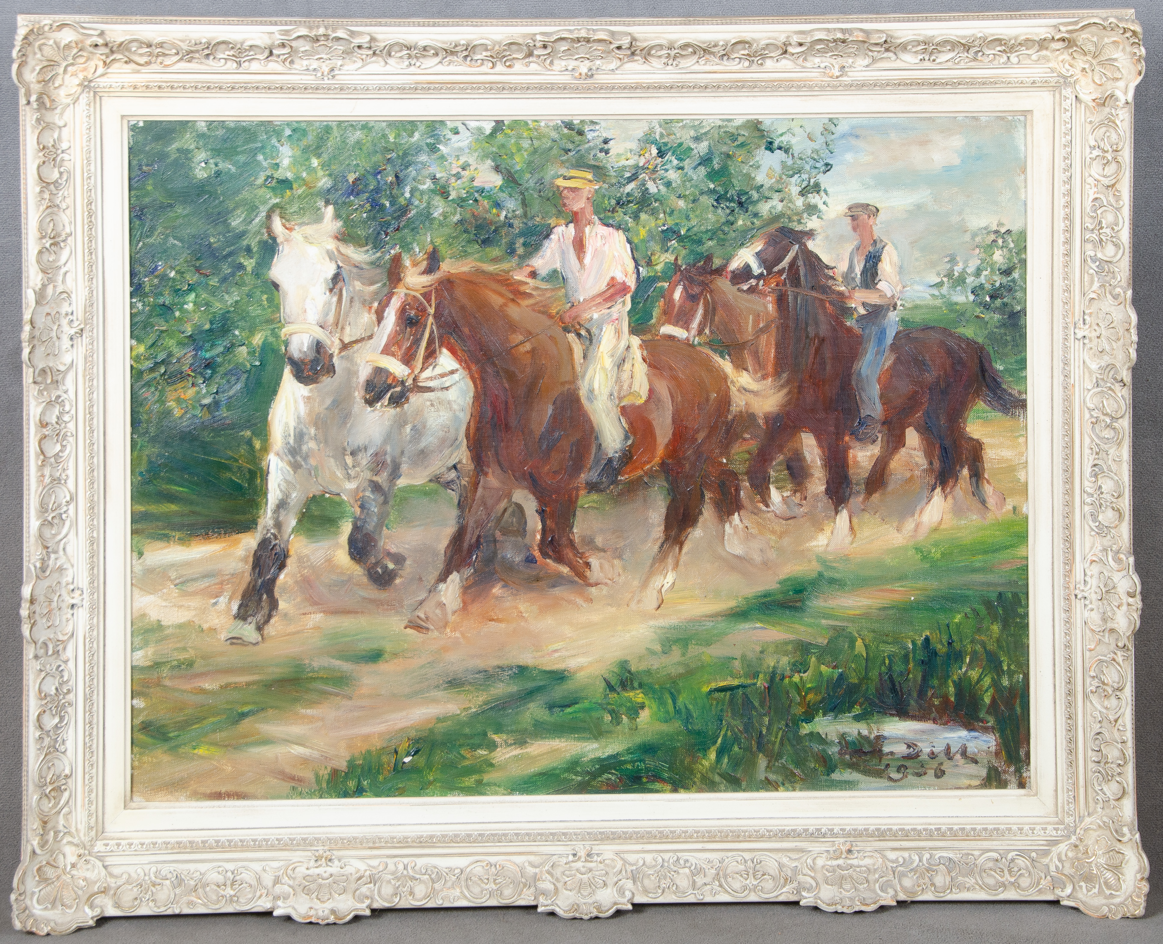 - Katalog-Nr: 1050Otto Dill (1884-1957). „Auf dem Weg zur Schwemme“. Öl/Lw., re./u./sign./dat. 1936, verso bez. auf Klebeetikett Kunstausstellung Gerstenberger Chemnitz, gerahmt, 62 x 80 cm.o.L.