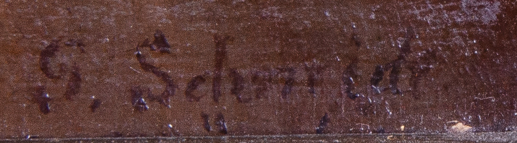 - Katalog-Nr: 1083S. Schmide (Maler des 20. Jhs.) nach Anton Romako. Junge Dame an der Spindel. Öl/Lw., li./u./sign., gerahmt, 32,5 x 24,5 cm.o.L.