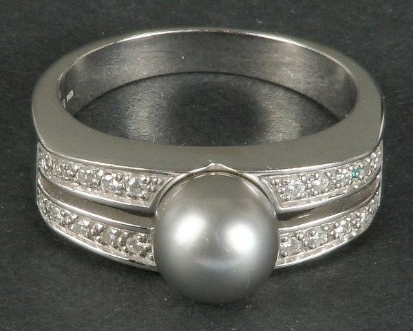 - Katalog-Nr: 1098Damenring. 18 kt Gold, besetzt mit Zuchtperle und Brillanten, ca. 0,20 ct, Gesamtgewicht ca. 8,3 g, Ringgröße 60. Die Begutachtungen der verarbeiteten Edelsteine und Diamanten wurden im gefassten Zustand vorgenommen, d.h. unter Vorbehalt einer sachgerechten Graduierung, die nur an ungefassten Steinen erfolgen kann. Dies hat zur Folge, dass die Gewichte (sog. "berechnete Gewichte", d.h. ca.+/- 10 % Abweichung) und Qualitäten (Farbe, Reinheit und Schliff) der Steine nur annähernd angegeben werden können.o.L.