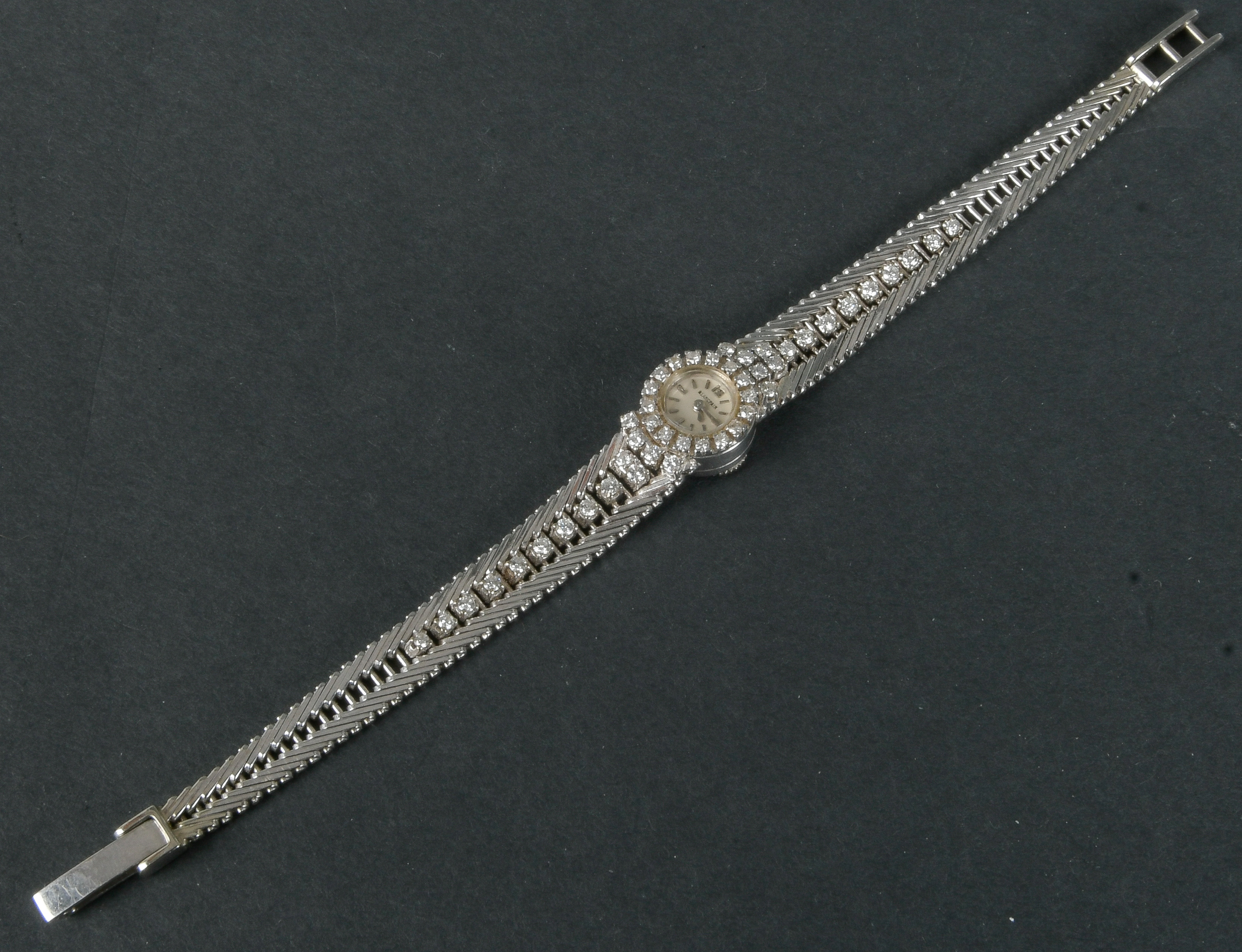 - Katalog-Nr: 1160Damenarmbanduhr „Blancpain“ mit Handaufzug. 18 kt Gold, besetzt mit Brillanten, ca. 0,90 ct, L=16,5 cm. (Funktion ungeprüft) Die Begutachtungen der verarbeiteten Edelsteine und Diamanten wurden im gefassten Zustand vorgenommen, d.h. unter Vorbehalt einer sachgerechten Graduierung, die nur an ungefassten Steinen erfolgen kann. Dies hat zur Folge, dass die Gewichte (sog. "berechnete Gewichte", d.h. ca.+/- 10 % Abweichung) und Qualitäten (Farbe, Reinheit und Schliff) der Steine nur annähernd angegeben werden können.o.L.