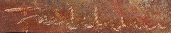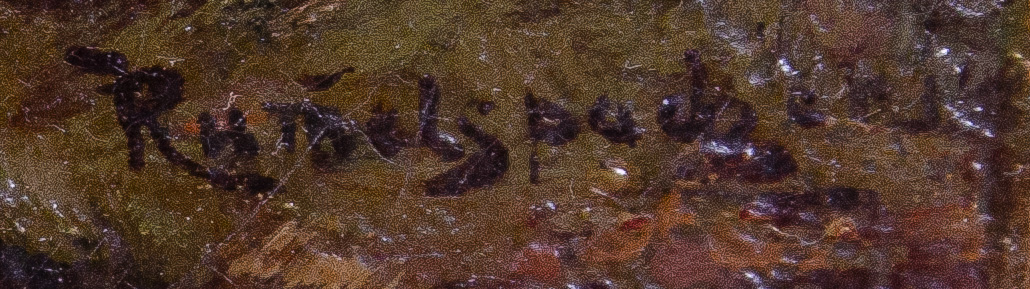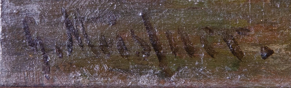 - Katalog-Nr: 1175Joseph Rummelspacher (1852-1921). Waldlandschaft mit zwei weiblichen Figuren. Öl/Lw., doubliert, re./u./sign., gerahmt, 32 x 26 cm.o.L.