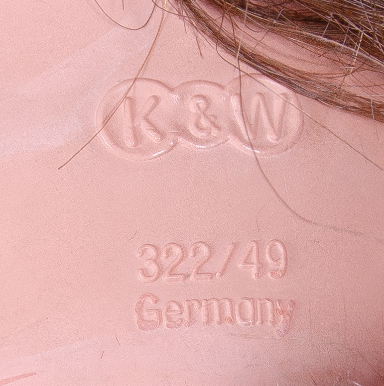 - Katalog-Nr: 1179Puppe. König & Wernicke 20. Jh. Mit Schlafaugen, geschlossenem Mund und Celluloidgliedern; verso am Nacken gemarkt und num. 322/49, in Karton, H=47 cm.o.L.