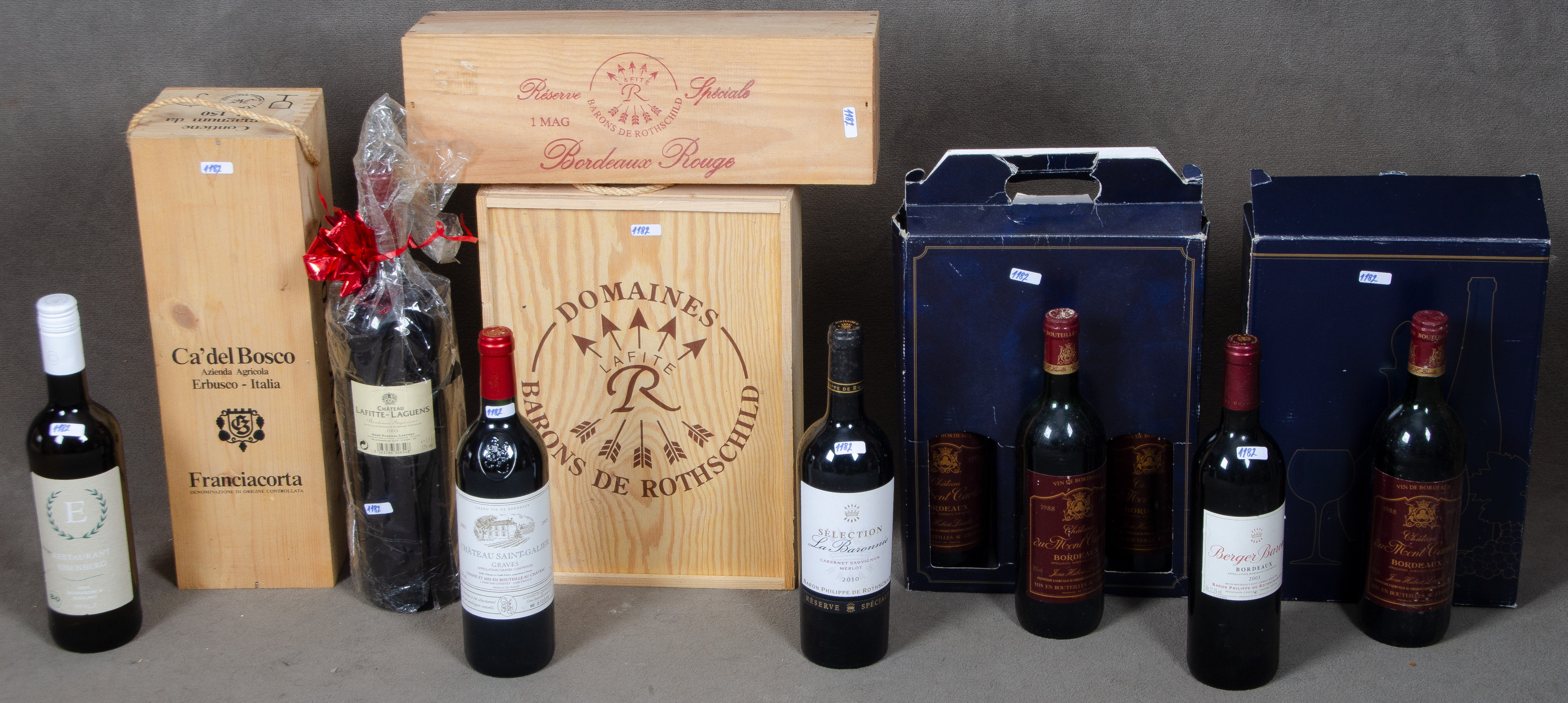 - Katalog-Nr: 118216 Fl. französische Rotweine, u.a. Sélection La Baronnie, Cabernet Sauvignon Merlon 2010; Berger Baron Bordeaux, Baron Philippe de Rothschild 2003; Château Saint-Galier 2003; Château Lafitte-Laguens, Bordeaux Supérieurs 1993; Château du Mont Carlaux Bordeaux 1988, teilw. in originaler Holzbox. Bitte beachten Sie, dass wir keine Garantie über Inhalt und dessen Haltbarkeit übernehmen.o.L.