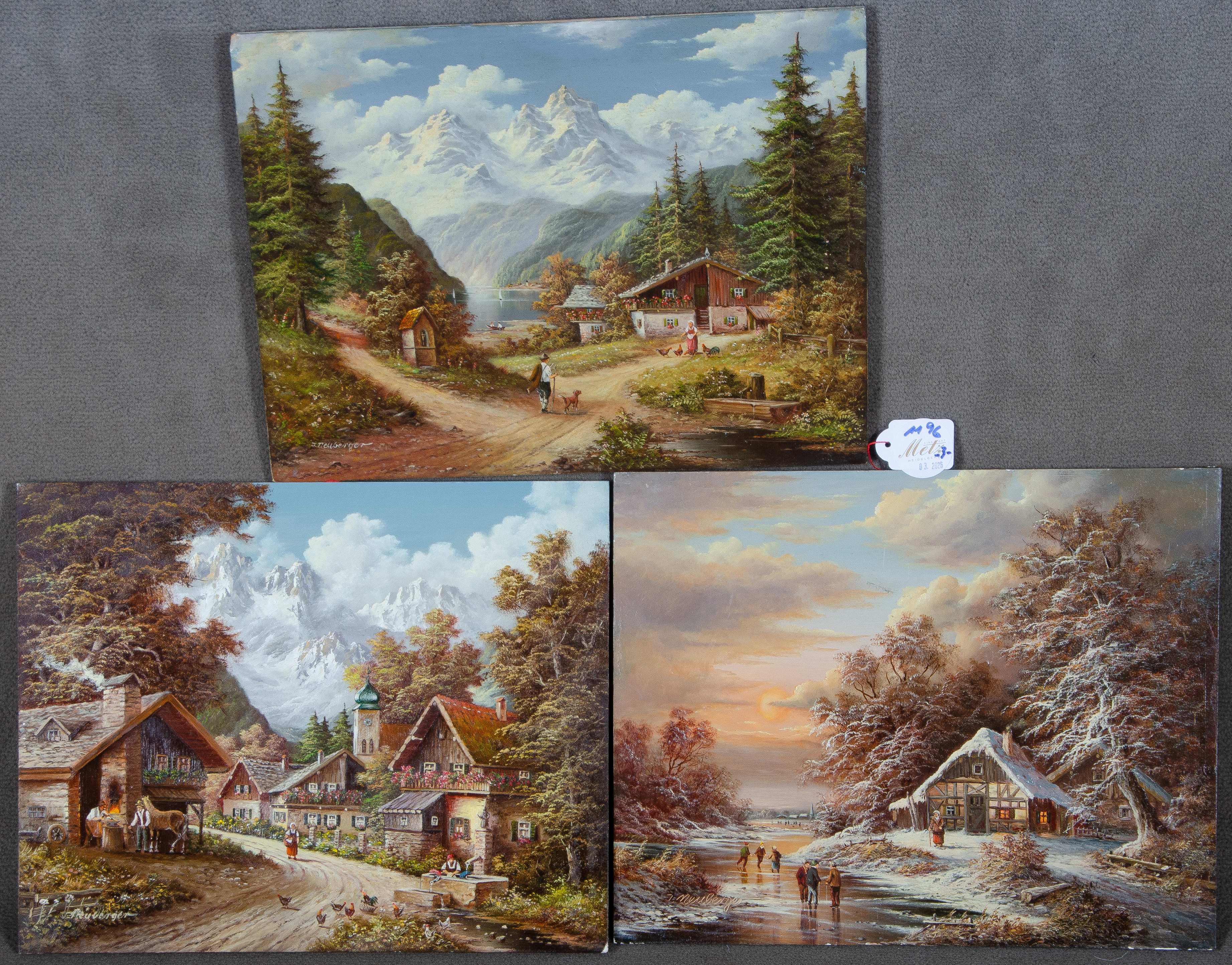 - Katalog-Nr: 1196Fritz Zschiesche (Pseudonym J. Neuberger 1926-2012). Winterlandschaft und zwei Sommerlandschaften. Öl/Lw., li./u./sign., je 24 x 30 cm.o.L.