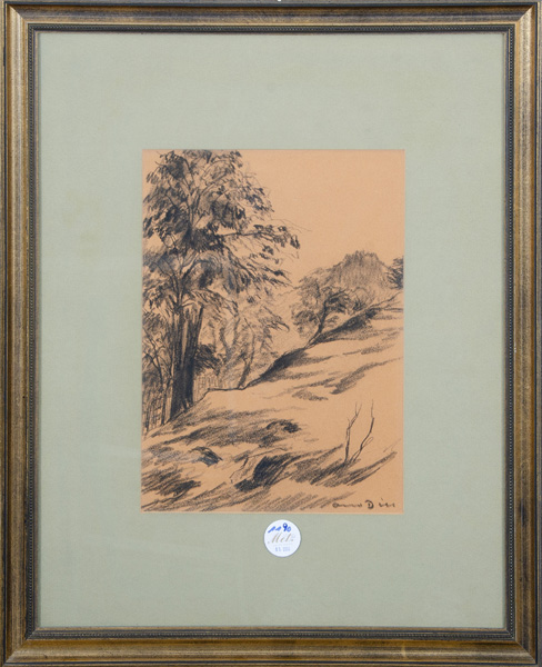- Katalog-Nr: 1190Otto Dill (1884-1957). Berglandschaft. Kohlezeichnung, re./u./sign., mit Passepartout hi./Gl. gerahmt, 30 x 22 cm.o.L.