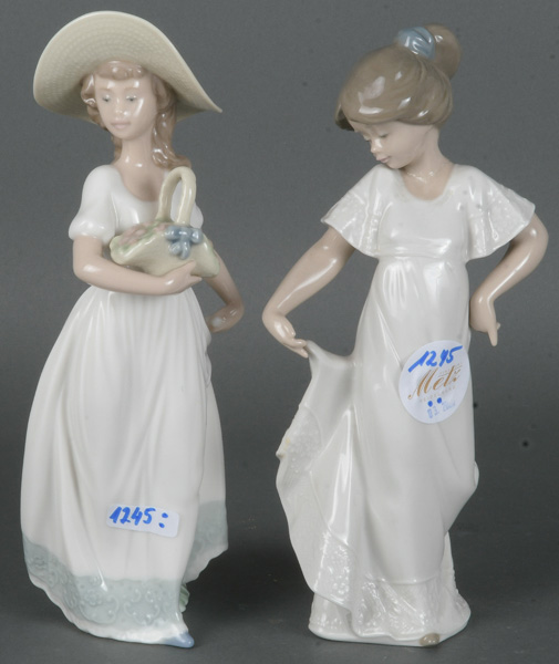 - Katalog-Nr: 1245Zwei Mädchenfiguren. Lladro 20. Jh. Porzellan, bunt bemalt, H=je 22,5 cm.o.L.